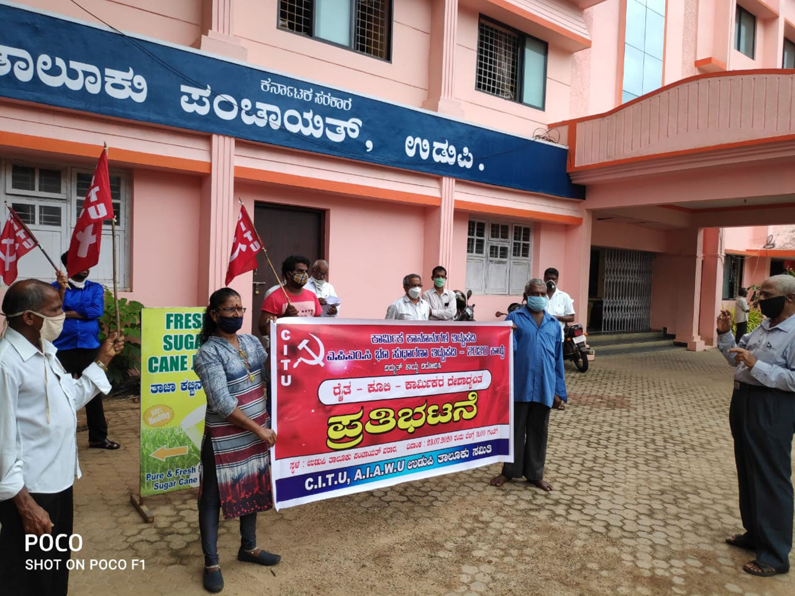 ಉಡುಪಿ ಜಿಲ್ಲಾ ಸಿಐಟಿಯು ಹಾಗೂ ಕೃಷಿ ಕೂಲಿಕಾರರ ಸಂಘದ ಜಂಟಿ ಆಶ್ರಯದಲ್ಲಿ ನಡೆದ ಪ್ರತಿಭಟನೆಯ ಕೊನೆಗೆ ತಾಲೂಕು ಪಂಚಾಯತ್ನ ಕಾರ್ಯನಿರ್ವಹಣಾಧಿಕಾರಿಗಳ ಮೂಲಕ ರಾಜ್ಯದ ಮುಖ್ಯಮಂತ್ರಿ ಬಿ.ಎಸ್. ಯಡಿಯೂರಪ್ಪ ಅವರಿಗೆ ಮನವಿ ಸಲ್ಲಿಸಲಾಯಿತು.