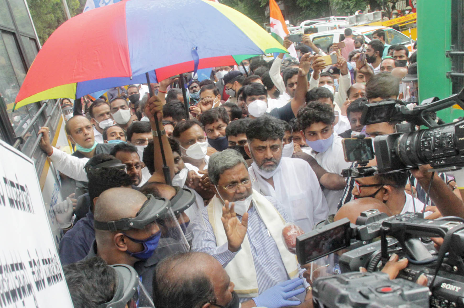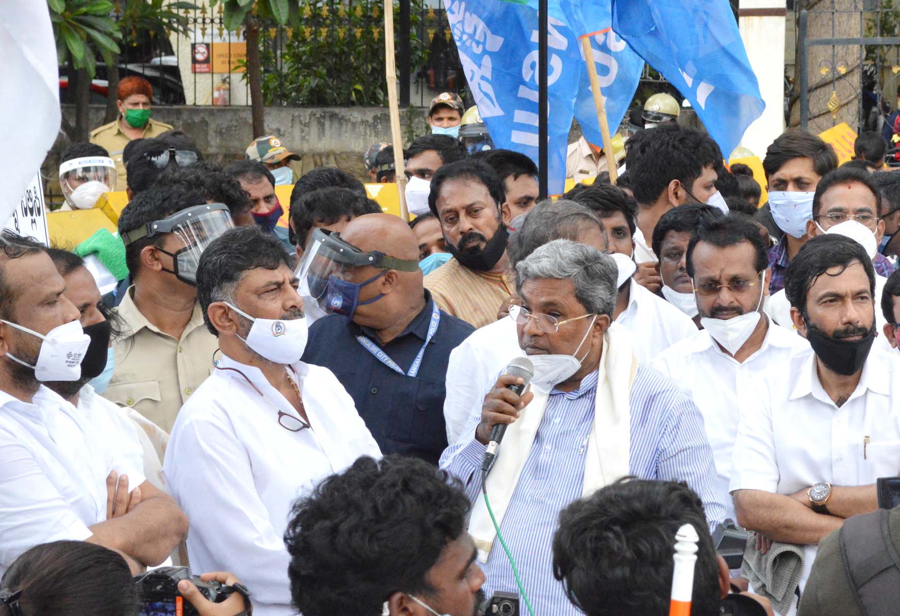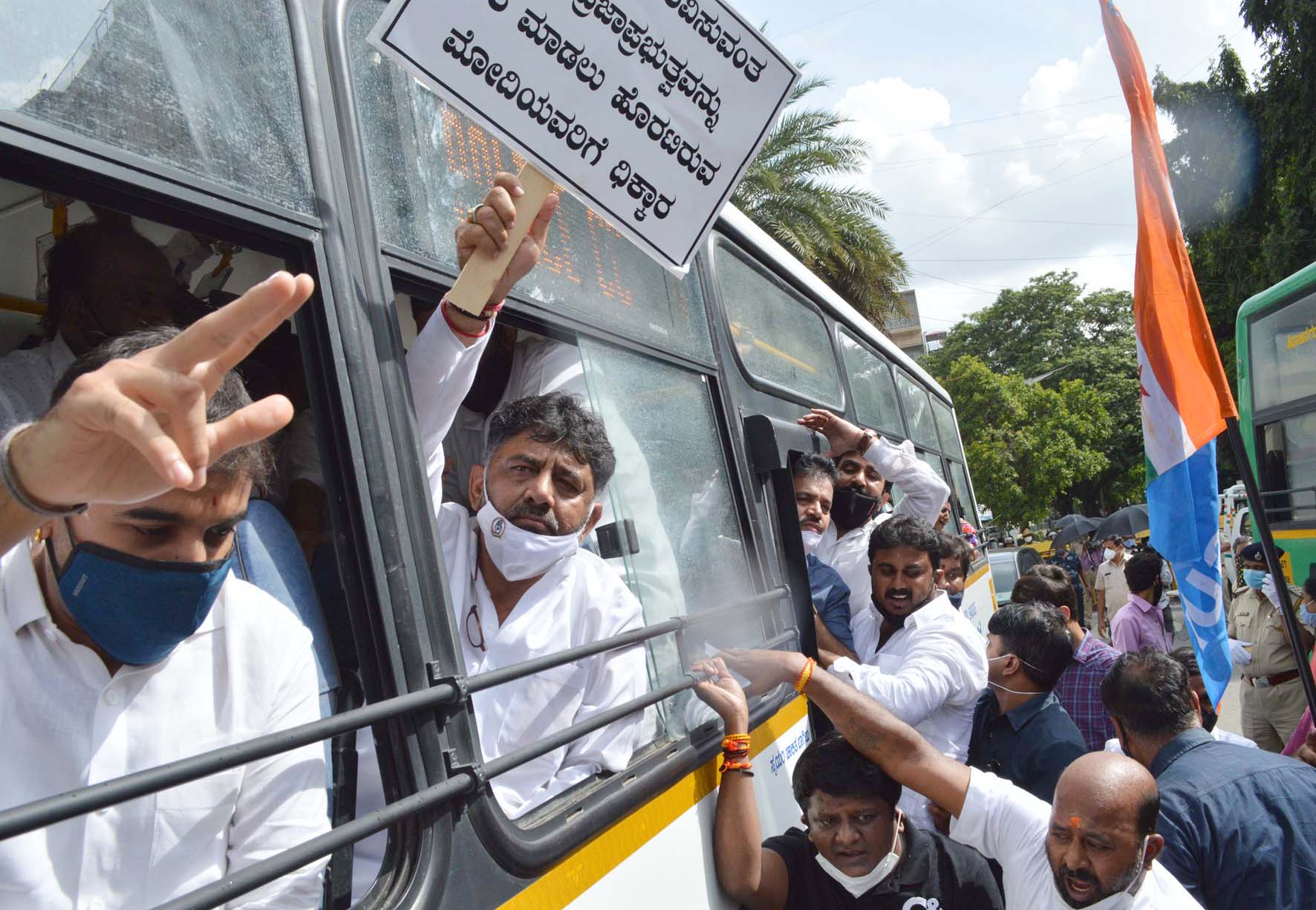 ಕೆಪಿಸಿಸಿ ವತಿಯಿಂದ ಪ್ರತಿಭಟನೆ; ಕೈ ನಾಯಕರ ಬಂಧನ, ಬಿಡುಗಡೆ