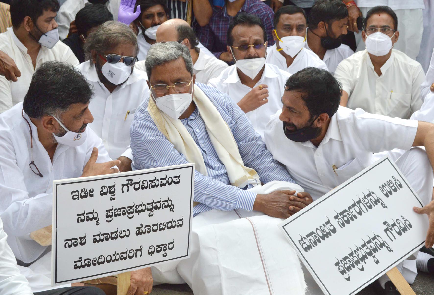 ರಾಜಸ್ತಾನ ಸೇರಿದಂತೆ ದೇಶದ ವಿವಿಧ ರಾಜ್ಯಗಳಲ್ಲಿ ಬಿಜೆಪಿಯೇತರ ಸರಕಾರಗಳನ್ನು ಅಧಿಕಾರದಿಂದ ಕೆಳಗಿಳಿಸಲು ಬಿಜೆಪಿಯು ಪ್ರಜಾತಂತ್ರ ಹಾಗೂ ಸಂವಿಧಾನದ ಕಗ್ಗೊಲೆ ನಡೆಸುತ್ತಿದೆ ಎಂದು ಆರೋಪಿಸಿ, ಸೋಮವಾರ ಕೆಪಿಸಿಸಿ ವತಿಯಿಂದ ಆಯೋಜಿಸಲಾಗಿದ್ದ ‘ಪ್ರಜಾಪ್ರಭುತ್ವ ಉಳಿಸಿ-ಸಂವಿಧಾನ ರಕ್ಷಿಸಿ’ ಪ್ರತಿಭಟನೆಯಲ್ಲಿ ಪಾಲ್ಗೊಂಡು ಅವರು ಮಾತನಾಡಿದರು.