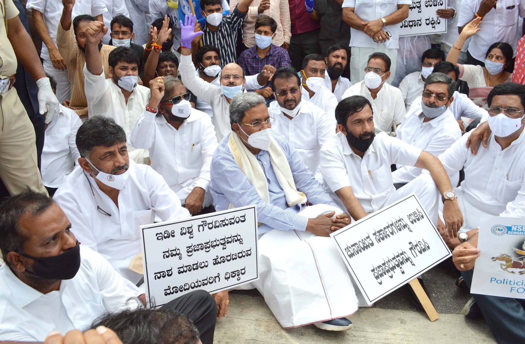 ರಾಜಸ್ಥಾನ ಸೇರಿದಂತೆ ದೇಶದ ವಿವಿಧ ರಾಜ್ಯಗಳಲ್ಲಿ ಬಿಜೆಪಿಯೇತರ ಸರಕಾರಗಳನ್ನು ಕೆಡವುವ ಮೂಲಕ ಬಿಜೆಪಿ ಪ್ರಜಾತಂತ್ರ ಹಾಗೂ ಸಂವಿಧಾನದ ಕಗ್ಗೊಲೆ ನಡೆಸುತ್ತಿದೆ ಎಂದು ಆರೋಪಿಸಿ ಕೆಪಿಸಿಸಿ ವತಿಯಿಂದ ಸೋಮವಾರ ಆಯೋಜಿಸಲಾಗಿದ್ದ ‘ಪ್ರಜಾಪ್ರಭುತ್ವ ಉಳಿಸಿ-ಸಂವಿಧಾನ ರಕ್ಷಿಸಿ’ ಪ್ರತಿಭಟನಾ ರ್ಯಾಲಿಯನ್ನುದ್ದೇಶಿಸಿ ಅವರು ಮಾತನಾಡಿದರು.