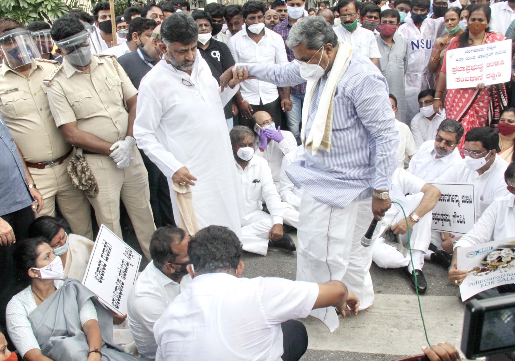 ಬಿಜೆಪಿಯ ಈ ನಡೆ ವಿರುದ್ಧ ರಾಜ್ಯಪಾಲರ ಮೂಲಕ ರಾಷ್ಟ್ರಪತಿಗೆ ಪತ್ರ ಕಳುಹಿಸಲು ಹೋದರೆ ಪೊಲೀಸರನ್ನು ಉಪಯೋಗಿಸಿಕೊಂಡು ರಾಜಭವನಕ್ಕೆ ಹೋಗದಂತೆ ತಡೆಯಲಾಗಿದೆ. ನಾವು ಗಲಾಟೆ ಮಾಡುತ್ತಿಲ್ಲ, ಕಾನೂನು ಉಲ್ಲಂಘನೆ ಮಾಡಿಲ್ಲ. ಶಾಂತ ರೀತಿಯಲ್ಲಿ ಪ್ರತಿಭಟನೆ ಮಾಡುತ್ತಿದ್ದರೂ ನಮಗೆ ಅವಕಾಶ ನೀಡುತ್ತಿಲ್ಲ ಎಂದು ಶಿವಕುಮಾರ್ ಕಿಡಿಗಾರಿದರು.