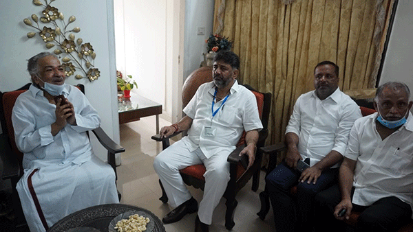 ಮಂಗಳೂರು, ಆ.1: ಕೆಪಿಸಿಸಿ ಅಧ್ಯಕ್ಷ ಡಿ.ಕೆ.ಶಿವಕುಮಾರ್ ಶನಿವಾರ ಸುರತ್ಕಲ್ ವಿಧಾನಸಭಾ ಕ್ಷೇತ್ರದ ಮಾಜಿ ಶಾಸಕ ಕೆ. ವಿಜಯ ಕುಮಾರ್ ಶೆಟ್ಟಿಯವರನ್ನು ಅವರ ಮನೆಯಲ್ಲಿ ಭೇಟಿ ಮಾಡಿ ಯೋಗ ಕ್ಷೇಮ ವಿಚಾರಿಸಿದರು.