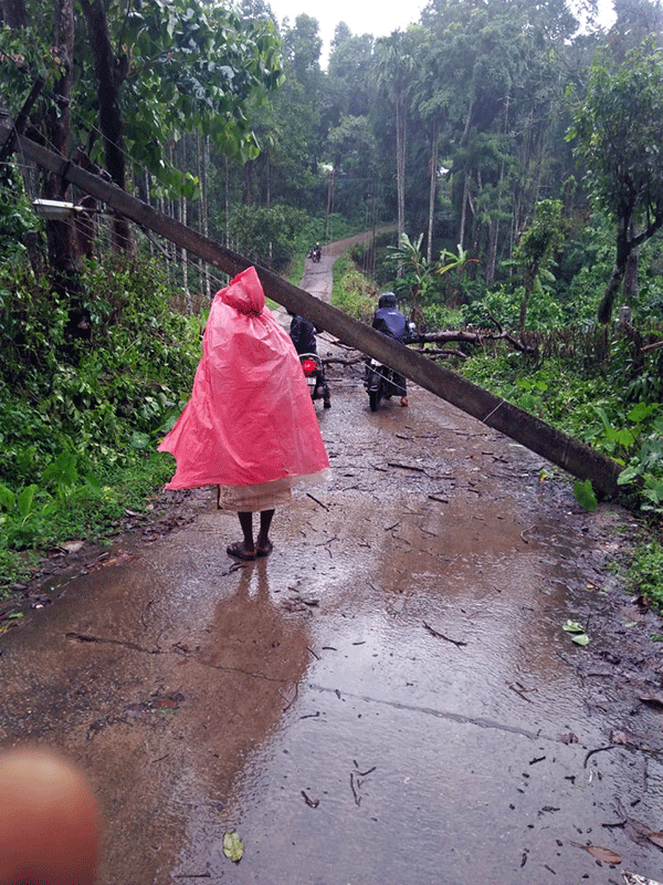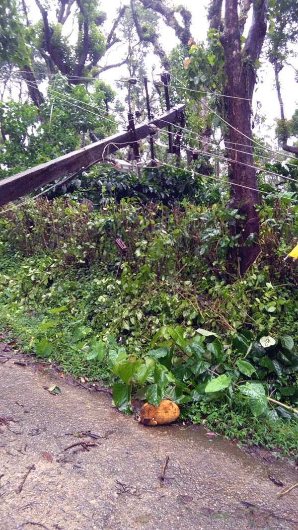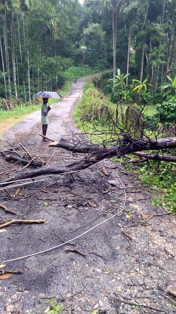 ಸೋಮವಾರ ಬೆಳಗ್ಗೆಯಿಂದ ಆರಂಭಗೊಂಡಿರುವ ಮಳೆ ಇನ್ನೂ ಮುಂದುವರಿದಿದೆ. ಈ ವೇಳೆ ಬೀಸುತ್ತಿರುವ ಭಾರೀ ಗಾಳಿಯಿಂದ ಹಲವೆಡೆ ಮರಗಳು ರಸ್ತೆಗುರುಳಿವೆ. ಇನ್ನೂ ಕೆಲವೆಡೆ ವಿದ್ಯುತ್ ಕಂಬಗಳ ಮೇಲೆ ಮರಗಳು ಉರುಳಿದ್ದರಿಂದ ವಿದ್ಯುತ್ ಸಂಪರ್ಕ ಕಡಿತಗೊಂಡಿದೆ. ಹಲವು ಗ್ರಾಮಗಳು ಕತ್ತಲೆಯಲ್ಲಿವೆ.