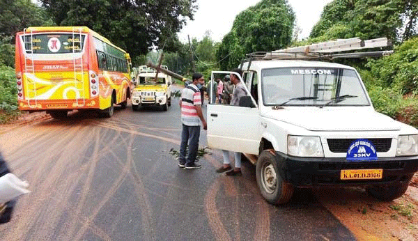 ತಾಲೂಕಿನಾದ್ಯಂತ ಕಳೆದೆರಡು ದಿನಗಳಿಂದ ಸುರಿಯುತ್ತಿರುವ ಭಾರೀ ಮಳೆಯಿಂದ ಅಲ್ಲಲ್ಲಿ, ಮರಗಳು ವಿದ್ಯುತ್ ಕಂಬಗಳು ಉರುಳುತ್ತಿವೆ. ಇಂದು ಬೆಳಗ್ಗಿನ ಜಾವ ಸುಮಾರು 5 ಗಂಟೆಗೆ ವೇಣೂರು ಗೋಳಿಯಂಗಡಿಯಿಂದ ಗುರುವಾಯನಕೆರೆಗೆ ಲಿನ್ಸ್ ಟಿ.ಡಿ. ಎಂಬವರು ಪಿಕಪ್ ಚಲಾಯಿಸಿಕೊಂಡು ಬರುತ್ತಿರುವ ಸಂದರ್ಭ ಪಡಂಗಡಿ ಸುಬೋದ್ ಮಹಲ್ ಬಳಿ ಇದ್ದಕ್ಕಿದ್ದಂತೆ ಹೈಟೆನ್ಶನ್ ವಿದ್ಯುತ್ ಕಂಬ ಮುರಿದು ಪಿಕಪ್ ಮೇಲೆ ಬಿದಿದ್ದೆ. ಆದರೆ ಘಟನೆಯಲ್ಲಿ ಅದೃಷ್ಟವಶಾತ್ ಯಾವುದೇ ಗಾಯಗಳಾಗದೆ ಚಾಲಕ ಪಾರಗಿದ್ದಾರೆ.