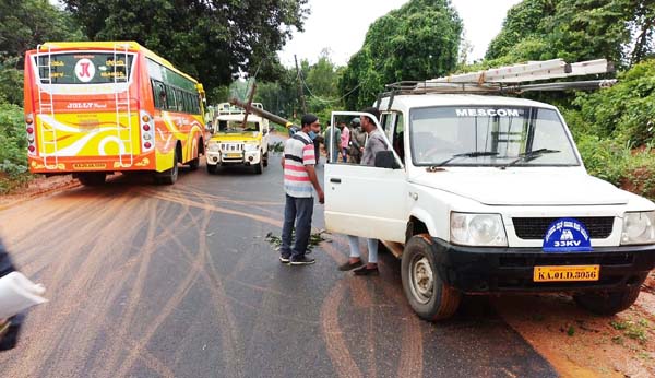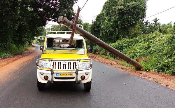 ಬೆಳ್ತಂಡಿಯಲ್ಲೂ ವಾಹನವೊಂದರ ಮೇಲೆ ವಿದ್ಯುತ್ ಕಂಬ ಬಿದ್ದಿದ್ದು, ವಾಹನ ಜಖಂಗೊಂಡಿದೆ. ಘಟನೆಯಲ್ಲಿ ಅದೃಷ್ಟವಶಾತ್ ಚಾಲಕ ಪ್ರಾಣಾಪಾಯದಿಂದ ಪಾರಾಗಿದ್ದಾರೆ. ಈ ವಾಹನ ವೇಣೂರಿನಿಂದ ಗುರುವಾಯಮಕೆರೆ ಕಡೆಗೆ ತೆರಳುತ್ತಿತ್ತು ಎಂದು ತಿಳಿದುಬಂದಿದೆ.