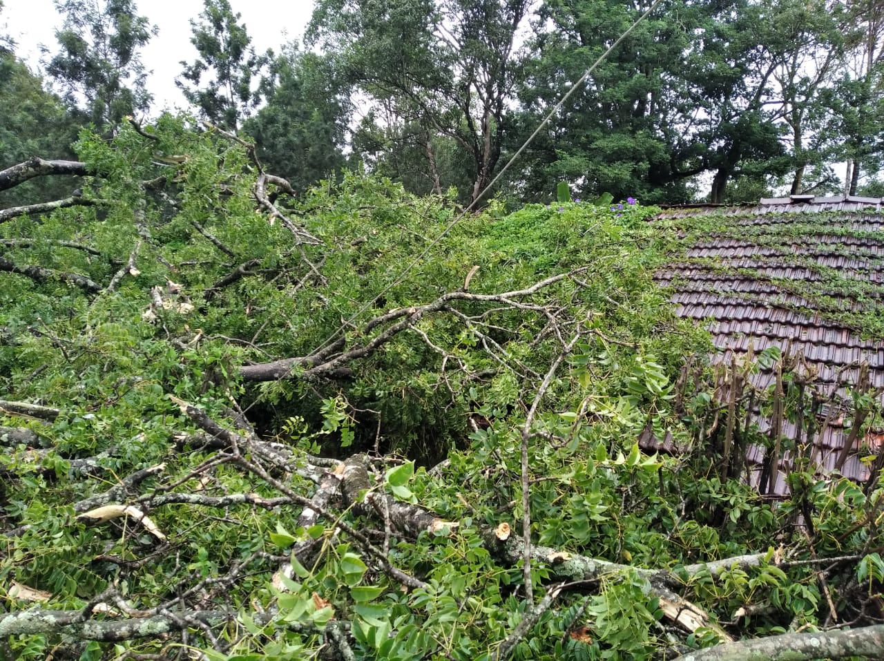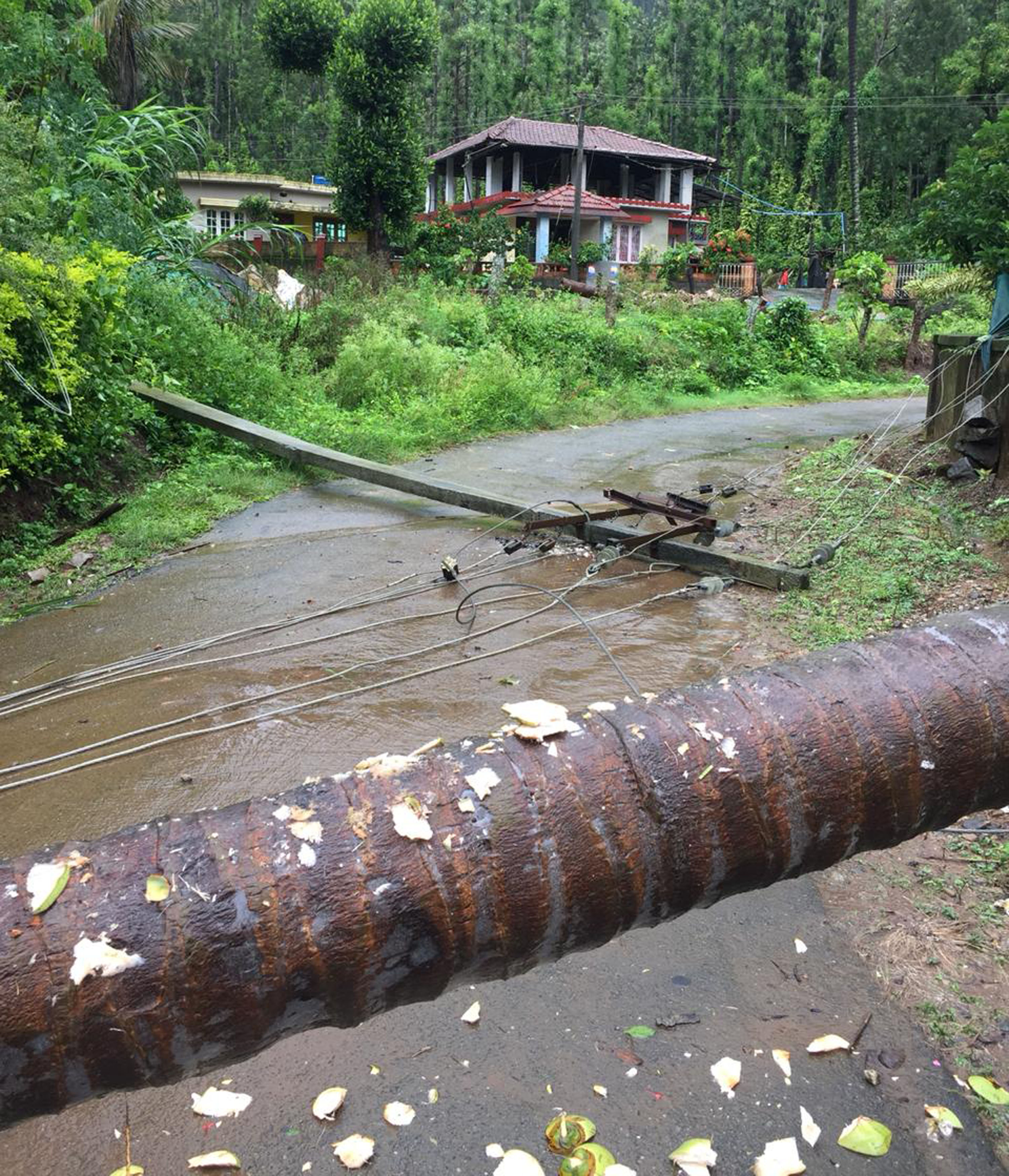 ಕೆ. ನಿಡುಗಣೆ ಪಂಚಾಯತ್ ನ ಹೆಬ್ಬೆಟ್ಟಗೇರಿ ಗ್ರಾಮದ ಮುಖ್ಯ ರಸ್ತೆಯಲ್ಲಿ ವಿದ್ಯುತ್ ತಂತಿಯ ಮೇಲೆ ಮರ ಉರುಳಿ ಬಿದ್ದ ಘಟನೆ ನಡೆದಿದೆ. ಸುಂಟಿಕೊಪ್ಪದ ಶಿವರಾಮ ಬಡಾವಣೆಯ ರಾಸಯ್ಯ ಎಂಬವರ ಮನೆಯ ಮೇಲಕ್ಕೆ ಭಾರೀ ಗಾತ್ರದ ಮರ ಉರುಳಿ ಬಿದ್ದು ಅಪಾರ ಹಾನಿಯಾಗಿದೆ. ಸ್ಥಳಕ್ಕೆ ಅಧಿಕಾರಿಗಳು ಭೇಟಿ ನೀಡಿ ಪರಿಶೀಲಿಸಿದ್ದಾರೆ. ವಿರಾಜಪೇಟೆ ಸಮೀಪದ ಬಿಟ್ಟಂಗಾಲ, ಬಿ. ಶೆಟ್ಟಿಗೇರಿ ರಸ್ತೆಗಳಲ್ಲಿ ವಿದ್ಯುತ್ ಕಂಬಗಳು ಧರೆಗುರುಳಿದ್ದು, ವಿದ್ಯುತ್ ವ್ಯತ್ಯಯ ಉಂಟಾಗಿದೆ. ಮಡಿಕೇರಿ ತಾಲ್ಲೂಕಿನಲ್ಲಿ ಮಳೆಯ ಪ್ರಮಾಣ ಹೆಚ್ಚೇ ಇದ್ದು, ವಿದ್ಯುತ್ ಕೊರತೆ ಎದುರಾಗಿದೆ. ನಗರದಲ್ಲಿ ಧಾರಾಕಾರ ಮಳೆಯೊಂದಿಗೆ ಚಳಿ ಗಾಳಿಯೂ ಇದೆ.