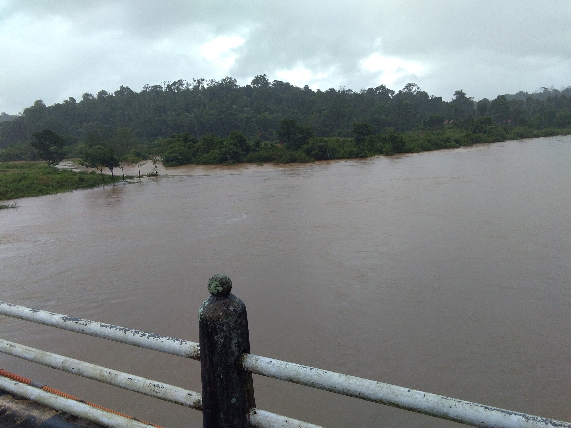 ಕಾವೇರಿ ನದಿ ಪಾತ್ರದ ಕೊಂಡಂಗೇರಿ ಸೇತುವೆಯ ಬಳಿ ಕಾವೇರಿ ಉಕ್ಕಿ ಹರಿಯುತ್ತಿದ್ದು, ಗದ್ದೆಬಯಲುಗಳು ನೀರಿನಿಂದ ಆವೃತ್ತವಾಗಿದೆ. ದಕ್ಷಿಣ ಕೊಡಗಿನ ಬಾಳೆಲೆ, ನಿಟ್ಟೂರು ವ್ಯಾಪ್ತಿಯಲ್ಲಿ ಭಾರೀ ಮಳೆ ಸುರಿಯುತ್ತಿದ್ದು, ಲಕ್ಷ್ಮಣ ತೀರ್ಥ ನದಿಯ ನೀರಿನ ಮಟ್ಟ ಕ್ಷಣ ಕ್ಷಣಕ್ಕೂ ಹೆಚ್ಚುತ್ತಿದೆ. ಬೇಗೂರು ಕೊಲ್ಲಿಯಲ್ಲಿ ನದಿಯ ಪ್ರವಾಹದಿಂದ ಗದ್ದೆ ಬಯಲುಗಳು ಮುಳುಗಡೆಯಾಗಿದೆ.