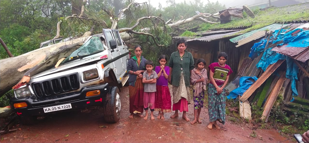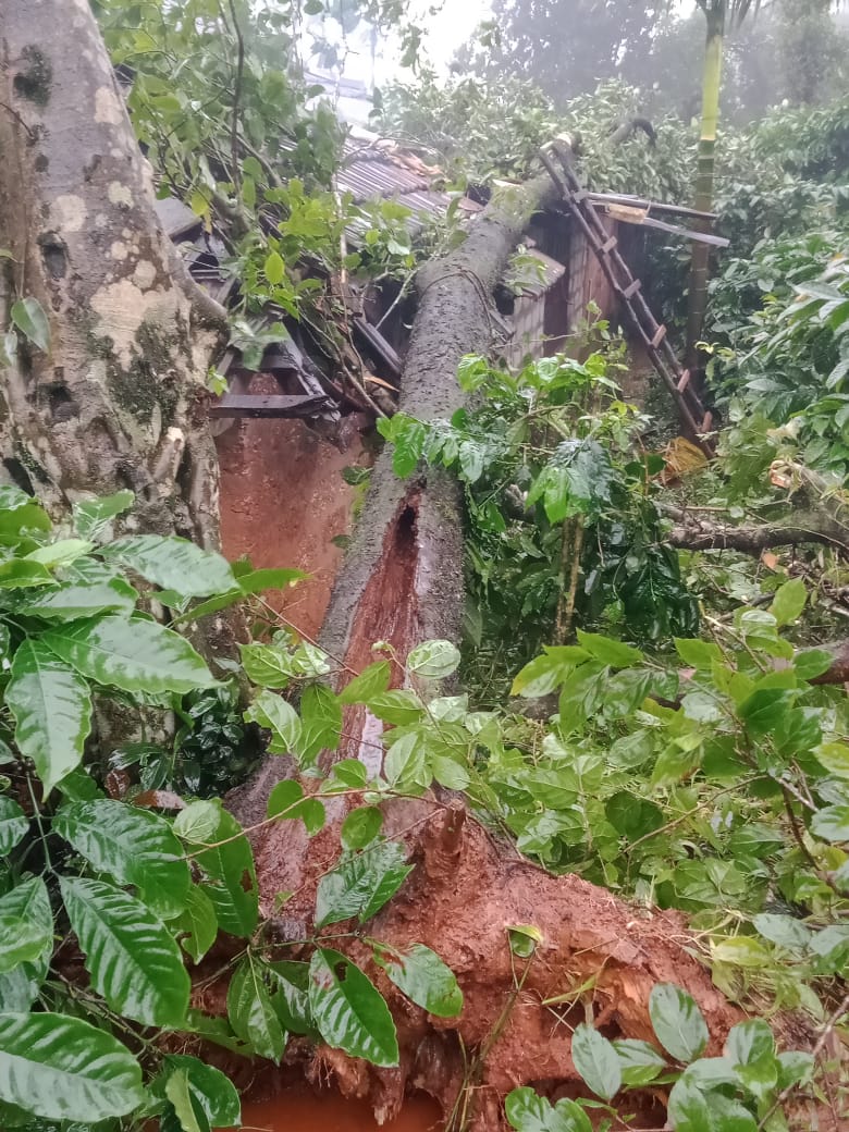 ಮನೆ ಮೇಲೆ ಉರುಳಿದ ಮರ: ತರೀಕೆರೆ ತಾಲೂಕಿನ ಕೆಮ್ಮಣ್ಣುಗುಂಡಿ ಗ್ರಾಮದಲ್ಲಿ ಬುಧವಾರ ಸುರಿದ ಭಾರೀ ಮಳೆ, ಗಾಳಿಗೆ ಬೃಹತ್ ಮರವೊಂದು ರವಿಚಂದ್ರನಾಯ್ಕ್ ಎಂಬವರ ಮನೆ ಮೇಲೆ ಉರುಳಿ ಬಿದ್ದಿದ್ದು, ಮನೆಗೆ ಹಾನಿಯಾಗಿದೆ. ಮನೆಯಲ್ಲಿದ್ದವರು ಸಣ್ಣಪುಟ್ಟ ಗಾಯಗಳೊಂದಿಗೆ ಪ್ರಾಣಾಪಾಯದಿಂದ ಪಾರಾಗಿದ್ದಾರೆ. ಈ ವೇಳೆ ಮನೆ ಸಮೀಪದಲ್ಲೇ ಇದ್ದ ಪ್ರಕಾಶ್ ಎಂಬವರಿಗೆ ಸೇರಿದ ಬೊಲೇರೋ ವಾಹನವೊಂದ ಸಂಪೂರ್ಣವಾಗಿ ನಜ್ಜುಗುಜ್ಜಾಗಿದೆ. ರವಿಚಂದ್ರ ಕುಟುಂಬ ಸದ್ಯ ಮನೆ ಕಳೆದುಕೊಂಡು ಅತಂತ್ರವಾಗಿದೆ.