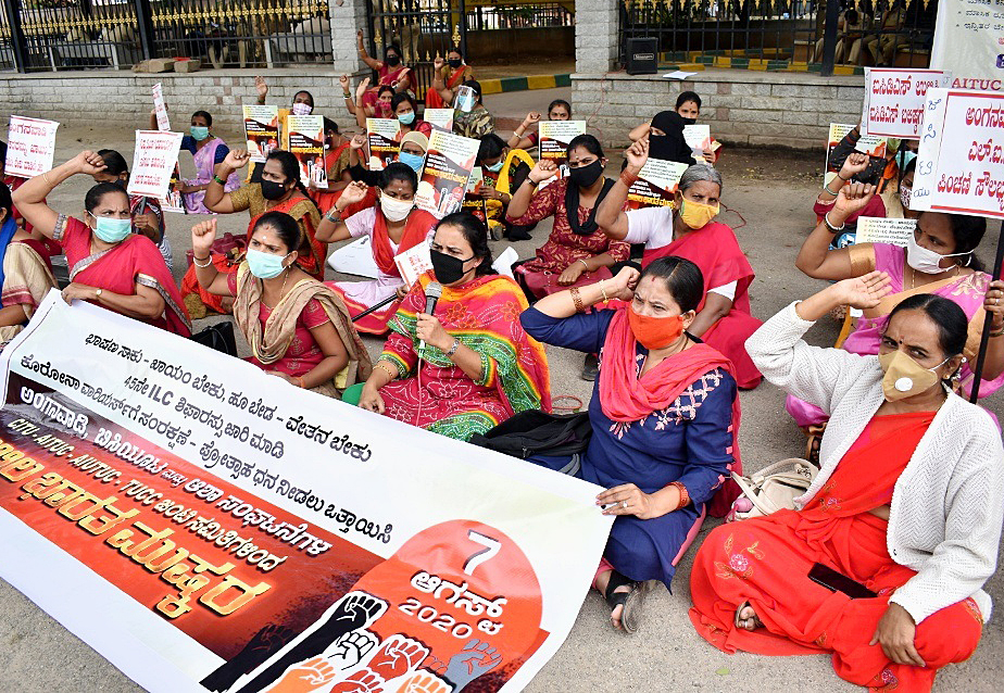 ಅಂಗನವಾಡಿ, ಆಶಾ ಸಂಘಗಳ ಜಂಟಿ ಸಮಿತಿ ಸದಸ್ಯರಿಂದ ಪ್ರತಿಭಟನೆ