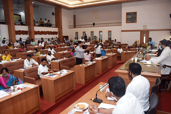 ನೂತನ ಮೇಯರ್, ಉಪ ಮೇಯರ್ ಅಧಿಕಾರ ಸ್ವೀಕರಿಸಿದ ಬಳಿಕದ ಪ್ರಥಮ ಸಭೆ ಇದಾಗಿದ್ದು, ವಿಪಕ್ಷ ನಾಯಕರಿಗೆ ಮಾತ್ರ ಸಭೆಯಲ್ಲಿ ಸಮಸ್ಯೆ ಬಗ್ಗೆ ವಿಷಯ ಪ್ರಸ್ತಾಪಿಸಲು ಅವಕಾಶವನ್ನು ಮೇಯರ್ ಒದಗಿಸಿದ್ದರು. ಆದರೆ, ಇದು ಸಂವಿಧಾನದ ನಿಯಮ ಹಾಗೂ ಕಾನೂನು ಬಾಹಿರ, ಸಾಮಾನ್ಯ ಸಭೆಯಲ್ಲಿ ಸದಸ್ಯರಿಗೆ ಚರ್ಚೆಗೆ ಅವಕಾಶ ನೀಡಬೇಕೆಂದು ವಿಪಕ್ಷ ಸದಸ್ಯರು ಮೇಯರ್ ಪೀಠದೆದುರು ತೆರಳಿ ಪ್ರತಿಭಟಿಸಿದ ಪ್ರಸಂಗವೂ ಇಂದು ನಡೆಯಿತು. ಸದಸ್ಯ ಎ.ಸಿ. ವಿನಯರಾಜ್ರವರು ಸಂವಿಧಾನದ ಪುಸ್ತಕವನ್ನು ಹಿಡಿದು ಸದಸ್ಯರ ಹಕ್ಕನ್ನು ಮೊಟಕುಗೊಳಿಸಲಾಗುತ್ತಿದೆ ಎಂದು ಆಕ್ಷೇಪ ವ್ಯಕ್ತಪಡಿಸಿದರು.