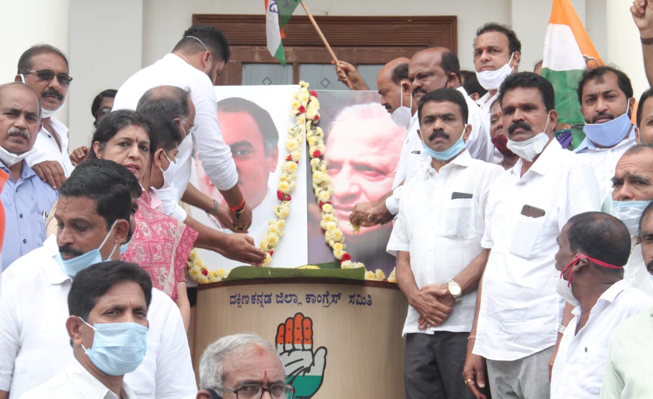 ನಗರದ ಕುದ್ಮುಲ್ ರಂಗರಾವ್ ಪುರಭವನದ ಎದುರು ಇಂದು ಮಾಜಿ ಪ್ರಧಾನಿ ರಾಜೀವ್ ಗಾಂಧಿಹಾಗೂ ಮಾಜಿ ಮುಖ್ಯಮಂತ್ರಿ ದೇವರಾಜ ಅರಸು ಅವರ ಜನ್ಮ ದಿನದ ಪ್ರಯುಕ್ತ ಕೇಂದ್ರ ಹಾಗೂ ರಾಜ್ಯದ ಬಿಜೆಪಿ ಸರಕಾರಗಳ ವಿರುದ್ಧ ದ.ಕ. ಜಿಲ್ಲಾ ಕಾಂಗ್ರೆಸ್ ವತಿಯಿಂದ ಆಯೋಜಿಸಲಾದ ಧರಣಿ ಸತ್ಯಾಗ್ರಹವನ್ನುದ್ದೇಶಿಸಿ ಮಾತನಾಡಿದರು.