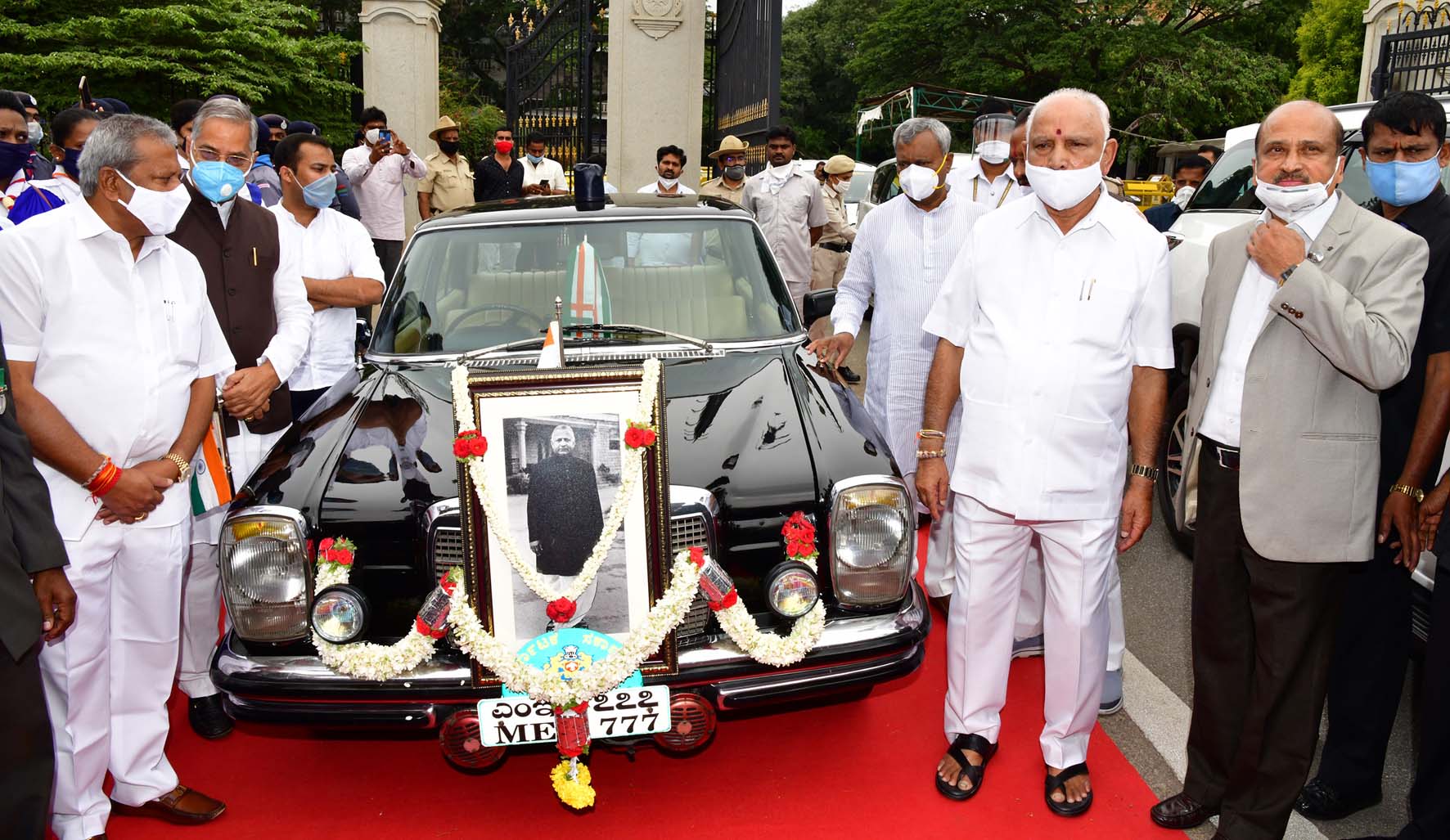 ಬೆಂಗಳೂರು, ಆ.20: ಮಾಜಿ ಮುಖ್ಯಮಂತ್ರಿ ಡಿ.ದೇವರಾಜ ಅರಸು ಅರವರ 105ನೆ ಜನ್ಮದಿನೋತ್ಸವದ ಪ್ರಯುಕ್ತ ಮುಖ್ಯಮಂತ್ರಿ ಯಡಿಯೂರಪ್ಪ ಅವರು ವಿಧಾನಸೌಧದ ಆವರಣದಲ್ಲಿರುವ ಅವರ ಪ್ರತಿಮೆಯ ಮುಂಭಾದಗಲ್ಲಿರಿಸಿದ್ದ ಭಾವಚಿತ್ರಕ್ಕೆ ಪುಪ್ಪ ನಮನ ಸಲ್ಲಿಸುವ ಮೂಲಕ ಗೌರವ ಸಲ್ಲಿಸಿದರು.