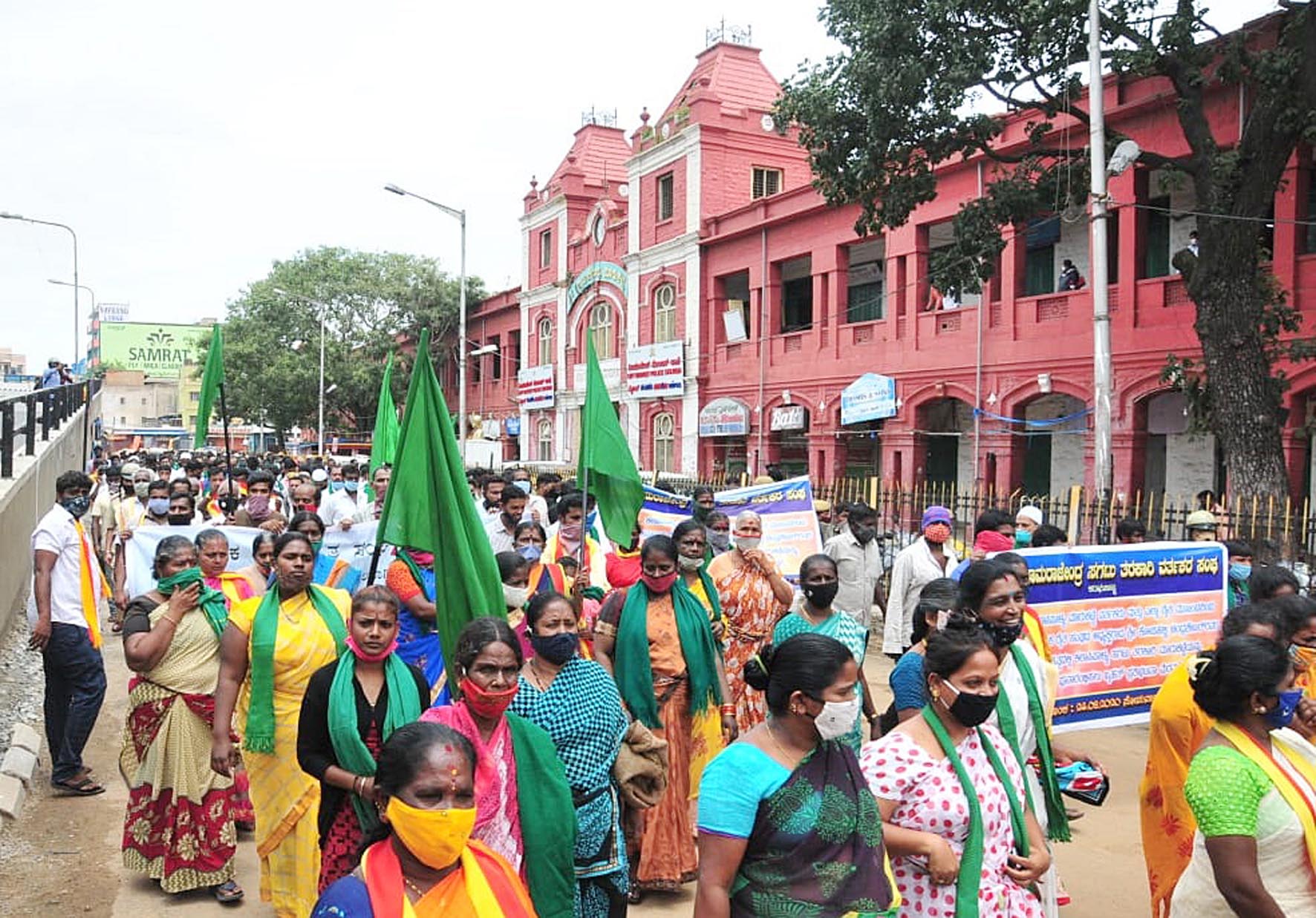 ಕಲಾಸಿಪಾಳ್ಯ, ಕೆ.ಆರ್ ಮಾರುಕಟ್ಟೆ ಪ್ರಾರಂಭಕ್ಕೆ ಒತ್ತಾಯಿಸಿ ಧರಣಿ; ಬಿಬಿಎಂಪಿ ಕಚೇರಿವರೆಗೆ ರ್ಯಾಲಿ