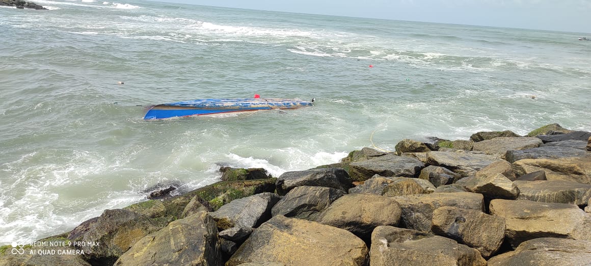 ಮರವಂತೆ ಸಮುದ್ರದಲ್ಲಿ ದೋಣಿ ಪಲ್ಟಿ: ಓರ್ವ ಮೀನುಗಾರನಿಗೆ ಗಾಯ ; ಮೂವರ ರಕ್ಷಣೆ