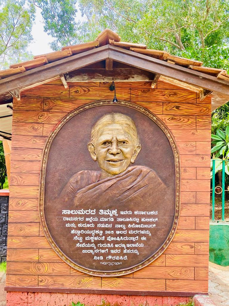 ಇತ್ತೀಚೆಗೆ ಟ್ರೀಪಾರ್ಕ್ ಪ್ರವೇಶದ್ವಾರದಲ್ಲಿ ಅನಾವರಣಗೊಳಿಸಲಾದ ಸಾಲು ಮರದ ತಿಮ್ಮಕ್ಕ ಅವರ ಫೈಬರ್ ಗ್ಲಾಸ್ನ ಕಲಾಕೃತಿಯು ಪಾರ್ಕ್ಗೆ ಹೊಸ ಲುಕ್ ನೀಡುವುದರೊಂದಿಗೆ ಎಲ್ಲರ ಗಮನ ಸೆಳೆಯುತ್ತದೆ.