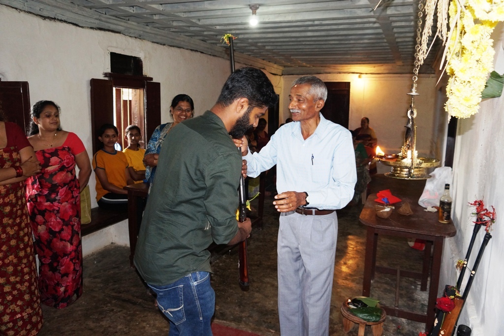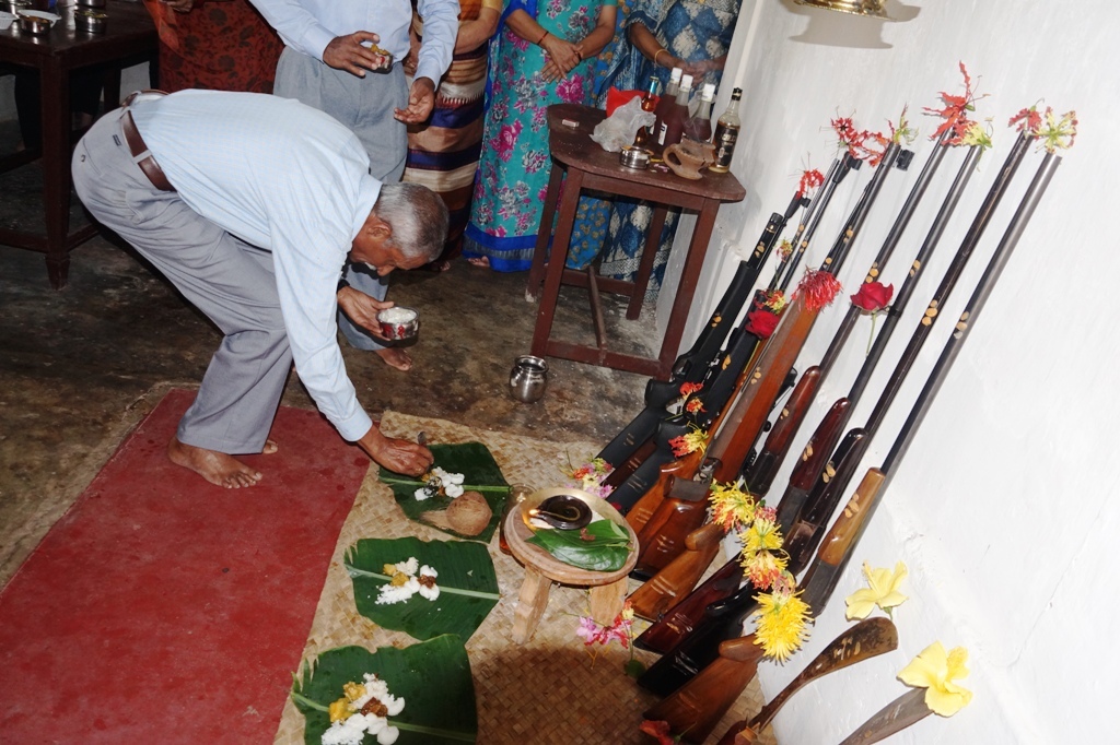 ಮದ್ಯಾಹ್ನ ನೆಲ್ಲಕ್ಕಿ ನಡುಬಾಡೆಯಲ್ಲಿ ಕೊಡವರ ಸಾಂಪ್ರದಾಯಿಕ ಆಯುಧಗಳಾದ ಕೋವಿ, ಒಡಿಕತ್ತಿ ಹಾಗು ಹಲವು ಆಯುಧಗಳನ್ನಿರಿಸಿ ತೋಕ್ಪೂ(ಗೌರಿ ಹೂ)ಗಳಿಂದ ಅಲಂಕರಿಸಿ, ಹಬ್ಬದ ಅಂಗವಾಗಿ ತಯಾರಿಸಿದ ವಿಶೇಷ ಖಾದ್ಯವನ್ನು ಇರಿಸಲಾಯಿತು. ಬಳಿಕ ಕುಟುಂಬದ ಹಿರಿಯರಾದ ಪುತ್ತರಿರ ಗಣೇಶ್ ಭೀಮಯ್ಯನವರು ಆಯುಧಗಳಿಗೆ ಕುಟುಂಬಸ್ಥರ ಸಮ್ಮುಖದಲ್ಲಿ ಪೂಜೆ ಸಲ್ಲಿಸಿದರು.