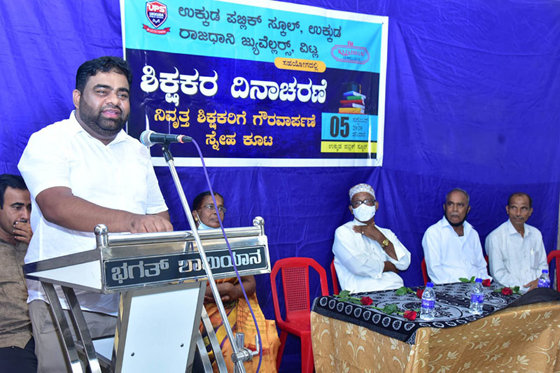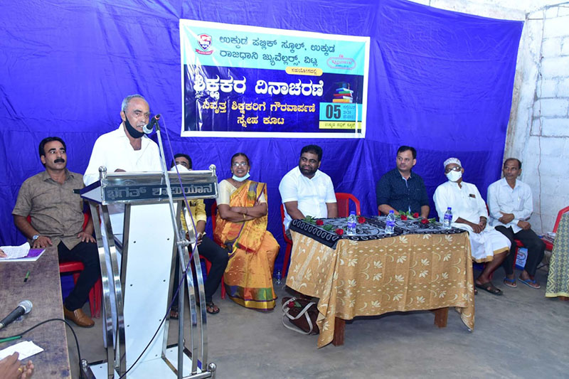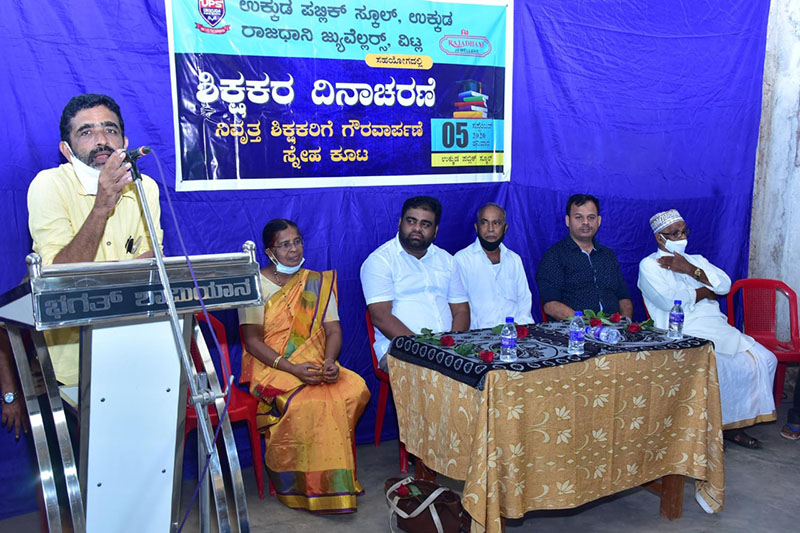 ಅವರು ಉಕ್ಕುಡ ಪಬ್ಲಿಕ್ ಸ್ಕೂಲ್ ನಲ್ಲಿ ವಿಟ್ಲ ರಾಜಧಾನಿ ಜ್ಯುವೆಲ್ಲರ್ಸ್ ಸಹಯೋಗದಲ್ಲಿ ಶನಿವಾರ ನಡೆದ ಶಿಕ್ಷಕರ ದಿನಾಚರಣೆ ಸಂದರ್ಭದಲ್ಲಿ ಮಾತನಾಡಿದರು.