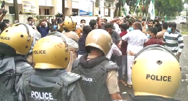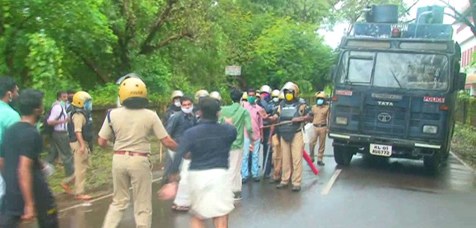 ಕಾಸರಗೋಡು: ಸಚಿವ ಕೆ.ಟಿ ಜಲೀಲ್ ರಾಜೀನಾಮೆಗೆ ಒತ್ತಾಯಿಸಿ ಎಂಎಸ್ಎಫ್ ಪ್ರತಿಭಟನೆ, ಪೊಲೀಸರಿಂದ ಜಲಫಿರಂಗಿ