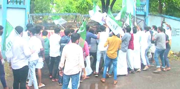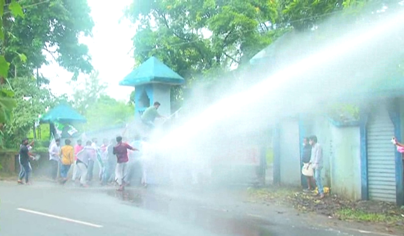 ವಿದ್ಯಾನಗರದಿಂದ ಮೆರವಣಿಗೆ ಮೂಲಕ ಆಗಮಿಸಿದ ಕಾರ್ಯಕರ್ತರು ಜಿಲ್ಲಾಧಿಕಾರಿ ಕಚೇರಿ ಪ್ರವೇಶ ಗೇಟ್ ಬಳಿ ಹಾಕಲಾಗಿದ್ದ ಬ್ಯಾರಿಕೇಡ್ ಗಳನ್ನು ದೂಡಿ ಮುನ್ನುಗ್ಗಲು ಯತ್ನಿಸಿದ್ದು, ಈ ಸಂದರ್ಭದಲ್ಲಿ ಪೊಲೀಸರು ಜಲಫಿರಂಗಿ ಪ್ರಯೋಗಿಸಿದರು.