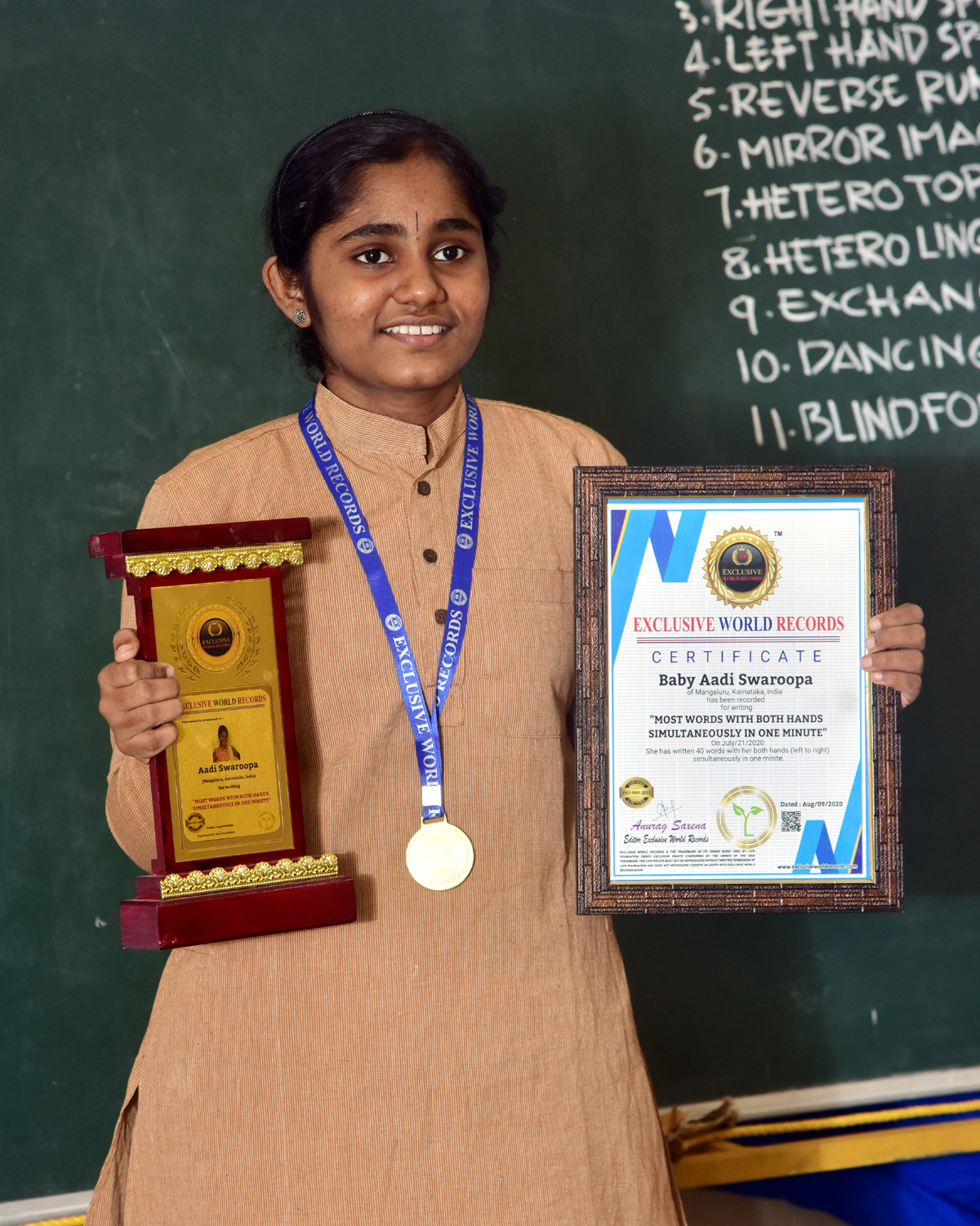 ಏಕ ಕಾಲದಲ್ಲಿ ಎರಡೂ ಕೈಗಳಿಂದ ಬರೆದು ವಿಶ್ವ ದಾಖಲೆ ಮಾಡಿದ ಮಂಗಳೂರಿನ ಬಾಲಕಿ