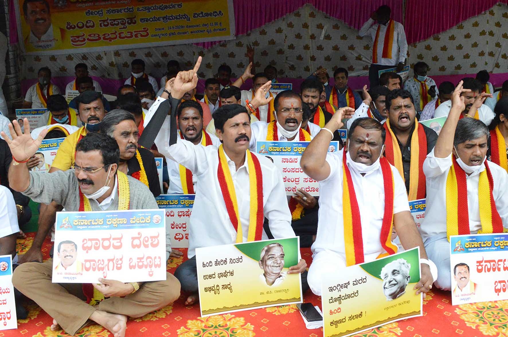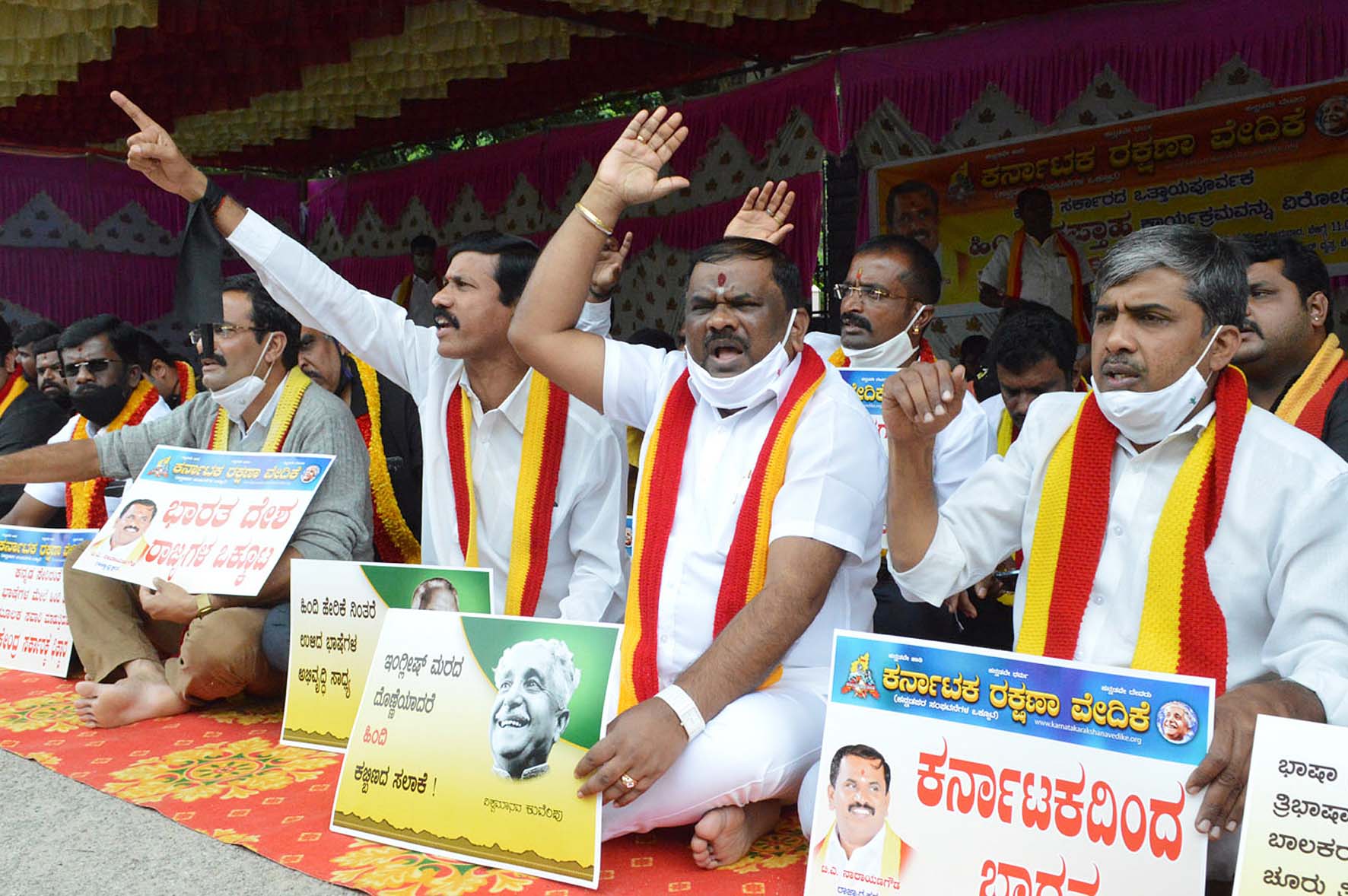 ನಗರದ ಆನಂದ್ರಾವ್ ವೃತ್ತದಲ್ಲಿ ಜಮಾಯಿಸಿದ ವೇದಿಕೆಯ ನೂರಾರು ಕಾರ್ಯಕರ್ತರು, ಕೇಂದ್ರ ಸರಕಾರ ಹಿಂದಿ ದಿವಸ್ ಆಚರಣೆ ಮಾಡುತ್ತಿರುವುದಕ್ಕೆ ಆಕ್ಷೇಪ ವ್ಯಕ್ತಪಡಿಸಿದರು. ಒಕ್ಕೂಟ ಸರಕಾರವು ಇಂಗ್ಲಿಷ್ ಮತ್ತು ಹಿಂದಿ ಭಾಷೆಗಳನ್ನು ಮಾತ್ರವೇ ತನ್ನ ಆಡಳಿತ ಭಾಷೆಗಳನ್ನಾಗಿ ಮಾಡಿಕೊಂಡಿರುವುದು ದೇಶದ ಇತರ ಭಾಷೆಗಳಿಗೆ, ಭಾಷಿಗರಿಗೆ ಮಾಡುತ್ತಿರುವ ಅನ್ಯಾಯವಾಗಿದೆ ಎಂದು ಆಕ್ರೋಶ ವ್ಯಕ್ತಪಡಿಸಿದರು.