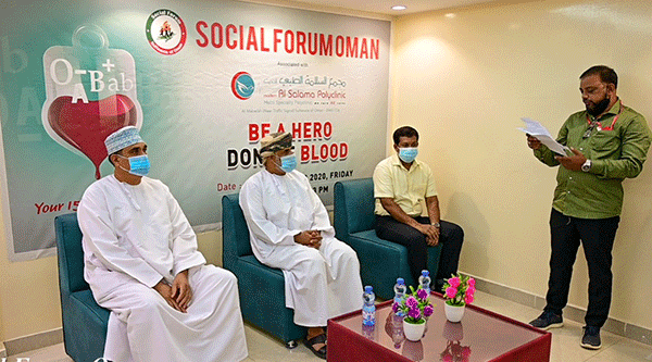 ಕೋವಿಡ್ ನ ಸಂದಿಗ್ಧತೆಯಲ್ಲಿ ಒಮಾನ್ ಆರೋಗ್ಯ ಸಂಸ್ಥೆಯ ರಕ್ತನಿಧಿ ಕೇಂದ್ರದಲ್ಲಿನ ರಕ್ತದ ಅಭಾವವನ್ನು ಮನಗಂಡು ಸೋಶಿಯಲ್ ಫೋರಂ ಒಮಾನ್ ಮತ್ತು ಒಮನ್ ಕೇಂದ್ರ ಆರೋಗ್ಯ ಇಲಾಖೆ ವತಿಯಿಂದ ‘ರಕ್ತದಾನ ಮಾಡಿ ಜೀವ ಉಳಿಸಿ’ ಎಂಬ ಶೀರ್ಷಿಕೆಯಡಿ ರಕ್ತದಾನ ಶಿಬಿರ ಅಭಿಯಾನವನ್ನು ಆಯೋಜಿಸಲಾಗಿತ್ತು.