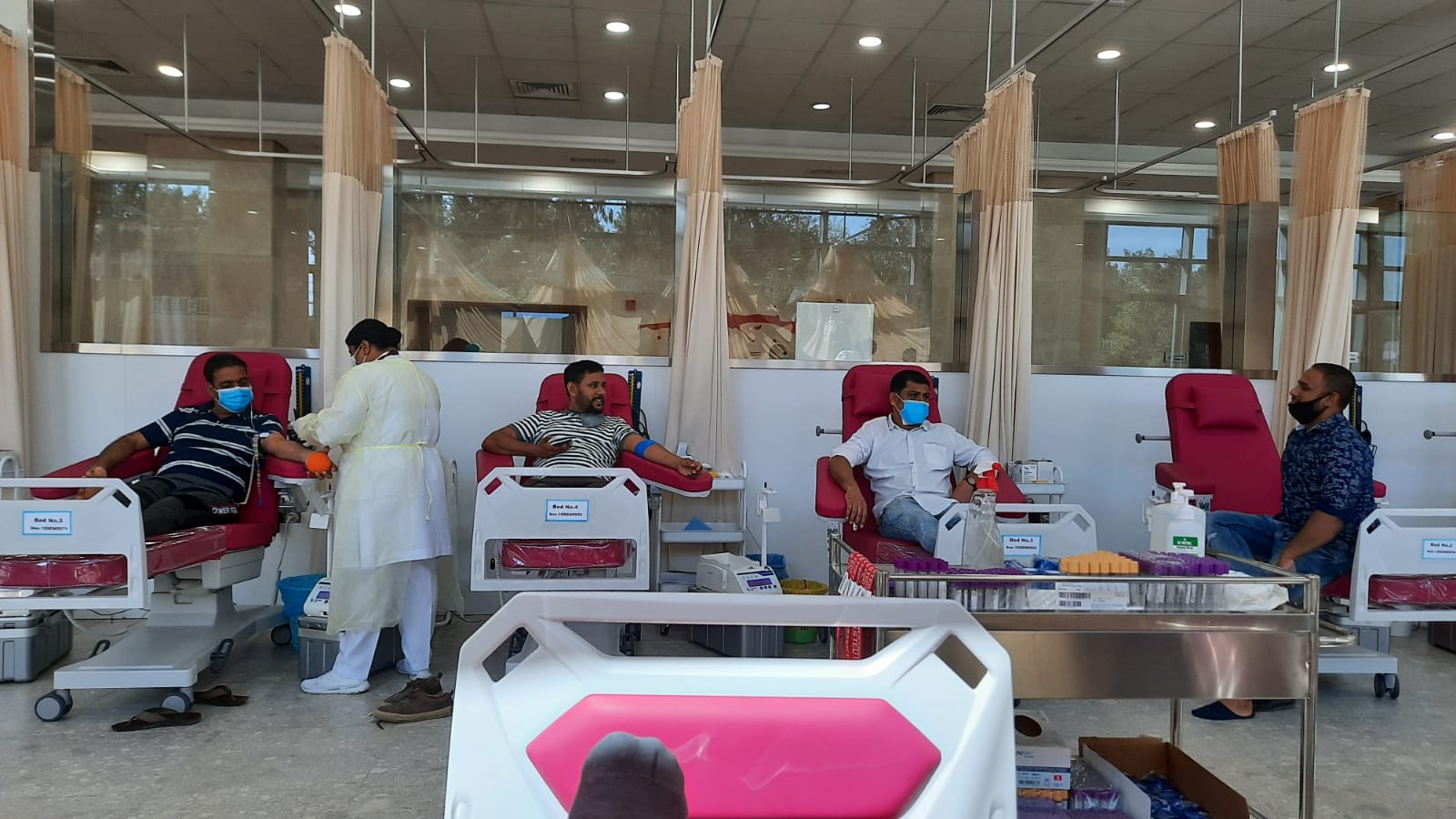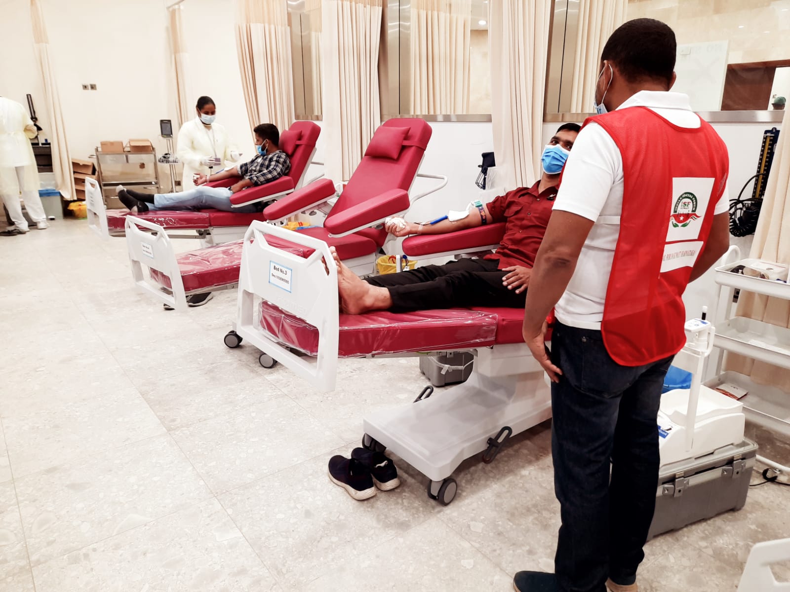 ಕೋವಿಡ್ ಮುನ್ನೆಚ್ಚರಿಕೆ ಮತ್ತು ಮಾರ್ಗಸೂಚಿಯೊಂದಿಗೆ ನಡೆದ ರಕ್ತದಾನ ಶಿಬಿರದಲ್ಲಿ ಸುಮಾರು ನೂರಕ್ಕೂ ಹೆಚ್ಚಿನ ಅನಿವಾಸಿಗಳು ಪಾಲ್ಗೊಂಡರು.