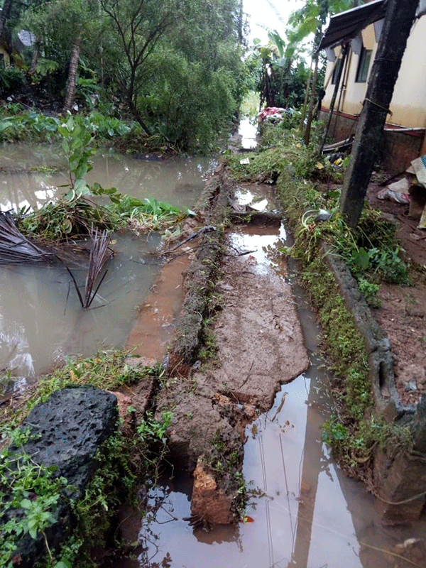 ರಾತ್ರಿ ನಿರಂತರವಾಗಿ ಮಳೆಯಾಗಿದ್ದು, ಉಡುಪಿ ನಗರದ ಸಂಕ ತೋಡು ತುಂಬಿ ಹರಿಯುತ್ತಿವೆ. ಆದರೆ ಮಠದ ಬೆಟ್ಟು ಬನ್ನಂಜೆ ಗರಡಿ ರಸ್ತೆಯಲ್ಲಿ ಶೇ.50ರಷ್ಟು ನೆರೆ ಪ್ರಮಾಣ ತಗ್ಗಿದೆ. ಮಠದಬೆಟ್ಟುಕೊಪ್ಪರತೋಟ ಎಂಬಲ್ಲಿ ಕೃಷ್ಣಪ್ಪ ಪೂಜಾರಿ ಎಂಬವರ ದನದ ಕೊಟ್ಟಿಗೆ ನಿನ್ನೆ ಸುರಿದ ಮಳೆಯಿಂದ ಭಾಗಶಃ ಕುಸಿದಿದೆ.