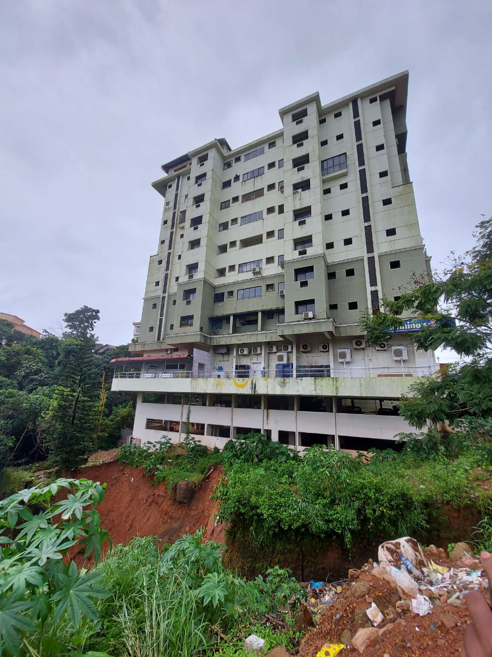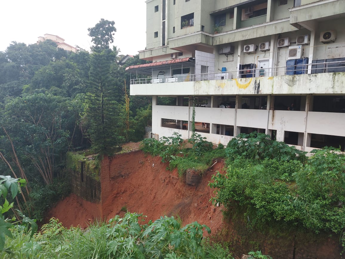 ಸಂಜೆ ನಾಲ್ಕು ಗಂಟೆ ಸುಮಾರಿಗೆ ಬಹುಮಹಡಿ ಕಟ್ಟಡದ ಕೆಳಗಿನ ಗುಡ್ಡ ಮೋರಿ ಸಹಿತ ಜರಿದು ಬಿದ್ದಿದೆ. ತಕ್ಷಣವೇ ಕಾರ್ಯಾಪ್ರವೃತ್ತರಾದ ಸ್ಥಳೀಯಾಡಳಿತ ಹಾಗೂ ಪೊಲೀಸರು ಕಟ್ಟಡದ ಮುಂಭಾಗದ ರಾಷ್ಟ್ರೀಯ ಹೆದ್ದಾರಿಯ ವಾಹನ ಸಂಚಾರವನ್ನು ನಿರ್ಬಂಧಿಸಿದ್ದಾರೆ.
