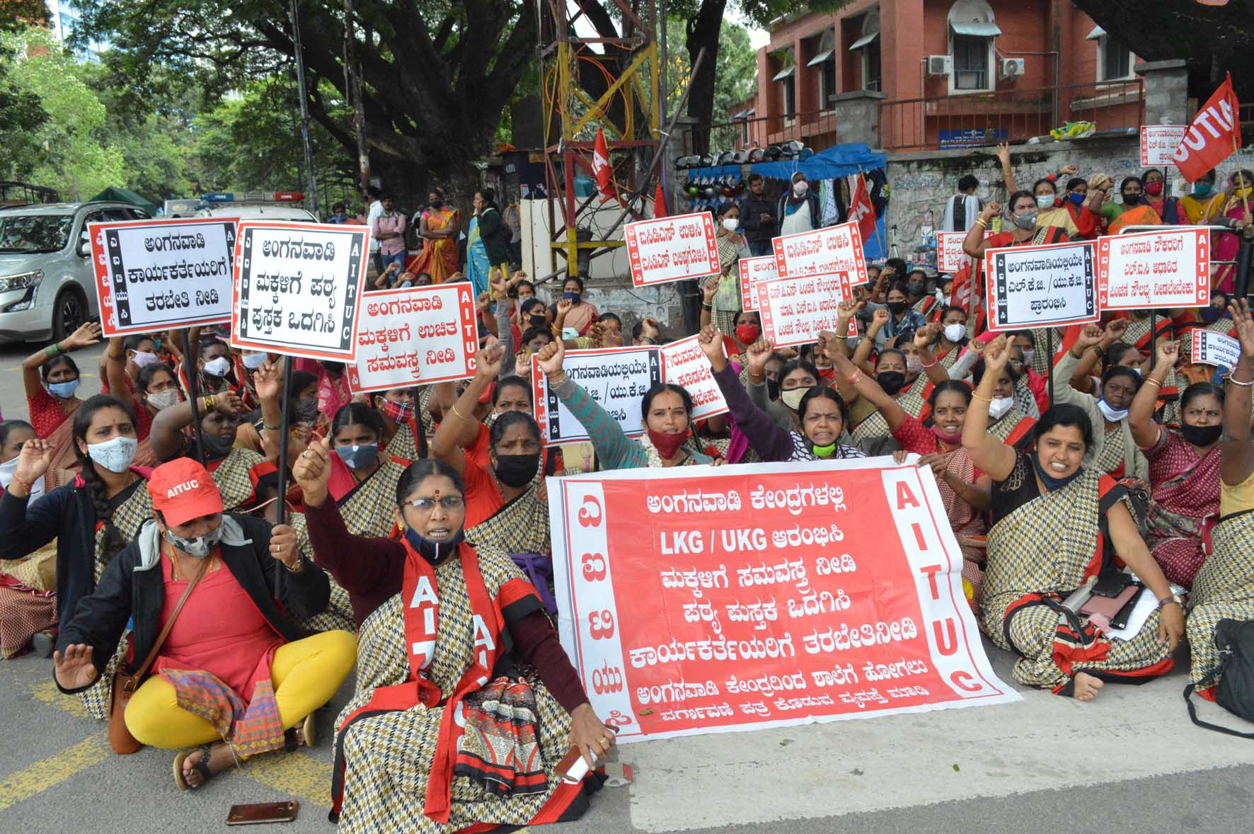 ಬೆಂಗಳೂರು: ಅಂಗನವಾಡಿ ಕಾರ್ಯಕರ್ತೆಯರ ಬೃಹತ್ ಪ್ರತಿಭಟನೆ