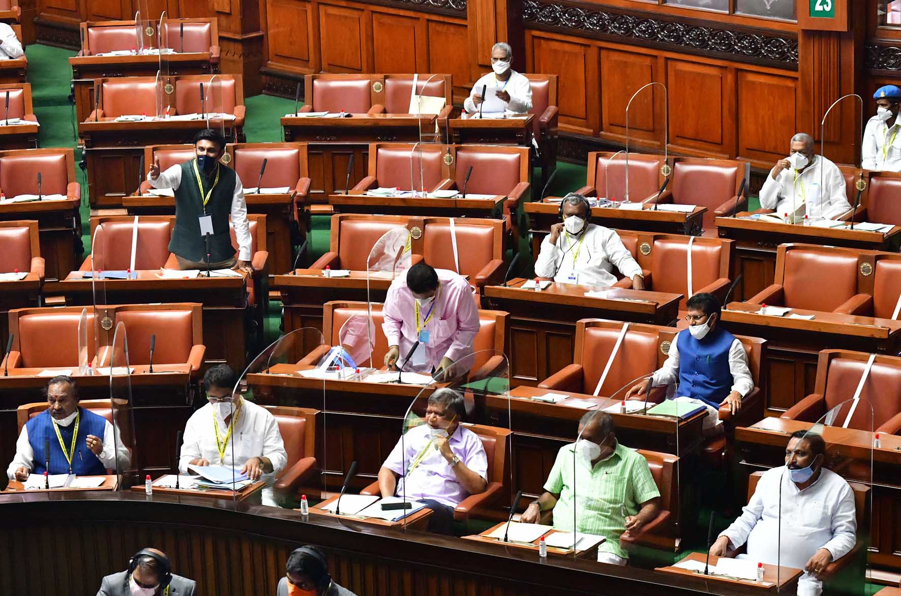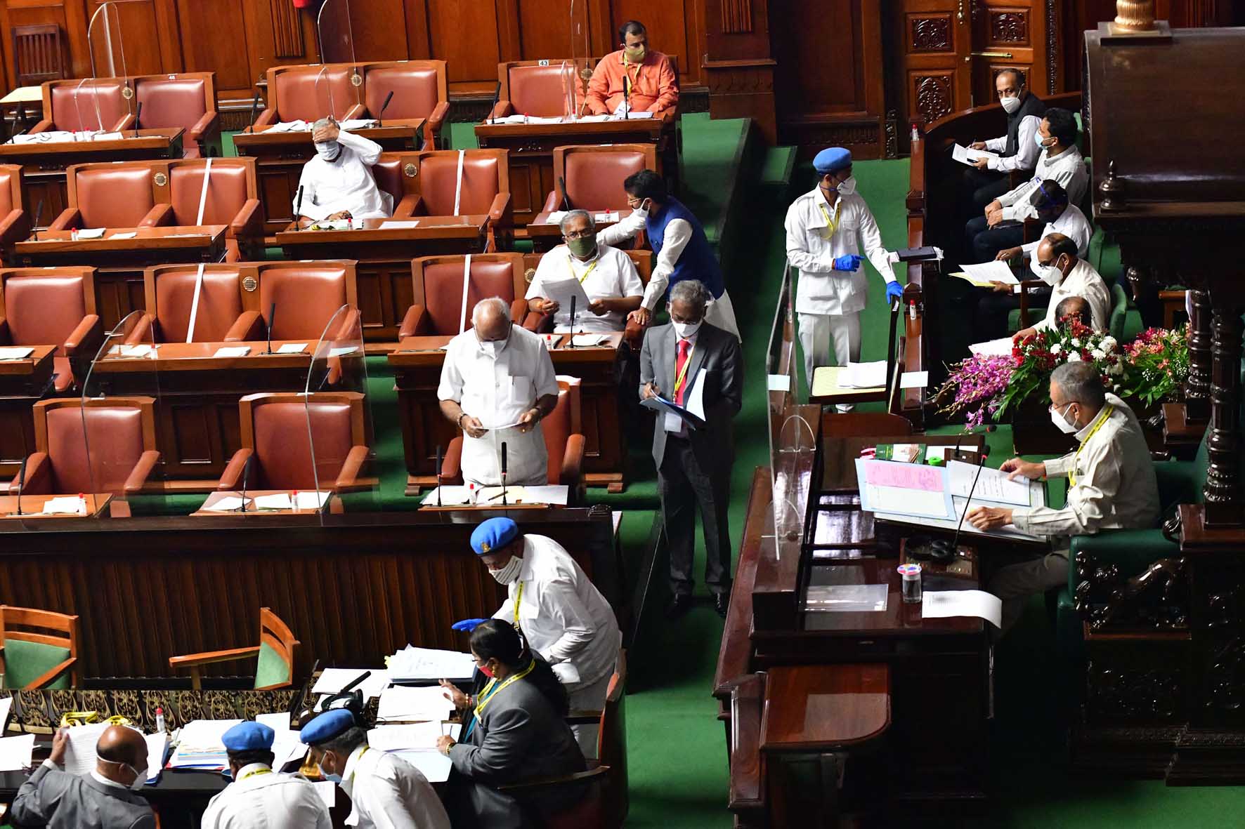 ಬೆಂಗಳೂರು, ಸೆ. 23: `ಕೊರೋನ ವೈರಸ್ ಸೋಂಕು ನಿಯಂತ್ರಣಕ್ಕೆ ಸಂಬಂಧಿಸಿದಂತೆ ವೈದ್ಯಕೀಯ ಉಪಕರಣಗಳ ಖರೀದಿಯಲ್ಲಿ ನಡೆದಿದೆ ಎನ್ನಲಾದ ವಿಪಕ್ಷಗಳ ಆರೋಪದಲ್ಲಿ ಹುರುಳಿಲ್ಲ. ಎಲ್ಲವೂ ಪಾರದರ್ಶಕವಾಗಿದ್ದು, ಯಾವುದೇ ತನಿಖೆ ಅಗತ್ಯವಿಲ್ಲ' ಎಂದು ಸರಕಾರ ತನಿಖೆಗೆ ನಿರಾಕರಿಸಿದ ಕ್ರಮವನ್ನು ವಿರೋಧಿಸಿ ವಿಪಕ್ಷ ಕಾಂಗ್ರೆಸ್ ಹಾಗೂ ಜೆಡಿಎಸ್ ಸದಸ್ಯರು ಸಭಾತ್ಯಾಗ ಮಾಡಿದರು.