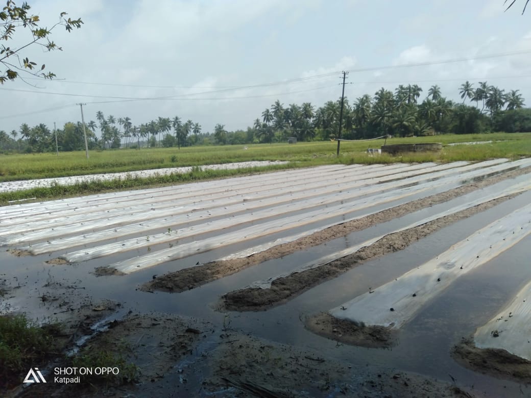 ಸತತ ಮಳೆಯಿಂದಾಗಿ ಮೂರು ದಿನಗಳ ಕಾಲ ಗದ್ದೆಯಲ್ಲಿ ನೀರು ನಿಂತಿದ್ದು, ಇದರಿಂದ ಸುಮಾರು 50 ಎಕರೆ ಪ್ರದೇಶದಲ್ಲಿ ಬೆಳೆದ ಮಟ್ಟುಗುಳ್ಳ ಸಸಿ ಕೊಳೆತು ಹೋಗಿದೆ. ಫ್ಲಾಸ್ಟಿಕ್ ಮಲ್ಟಿಂಗ್ ಪದ್ಧತಿಯಲ್ಲಿ ನೆಟ್ಟು ಬೆಳೆಸಿದ ಗಿಡಗಳು ಇದೀಗ ಬಲಿತಿದ್ದು, ಕೆಲವೇ ಸಮಯಲ್ಲಿ ಪಸಲು ಕೊಡಲು ಪ್ರಾರಂಭಿಸುತ್ತಿತ್ತು. ಇದೀಗ ಸಸಿಗಳು ಗದ್ದೆಯಲ್ಲೇ ಕೊಳೆತು ಹೋಗಿದೆ. ಇದರಿಂದ ಮುಂದಿನ ಹಂತದ ನಾಟಿಗೂ ಸಸಿ ಇಲ್ಲದಂತಾಗಿದೆ. ಈ ಮೂಲಕ ಈ ಬಾರಿಯ ಮಟ್ಟುಗುಳ್ಳ ಕೃಷಿಗೆ ಭಾರೀ ಹಿನ್ನಡೆಯಾದಂತಾಗಿದೆ.