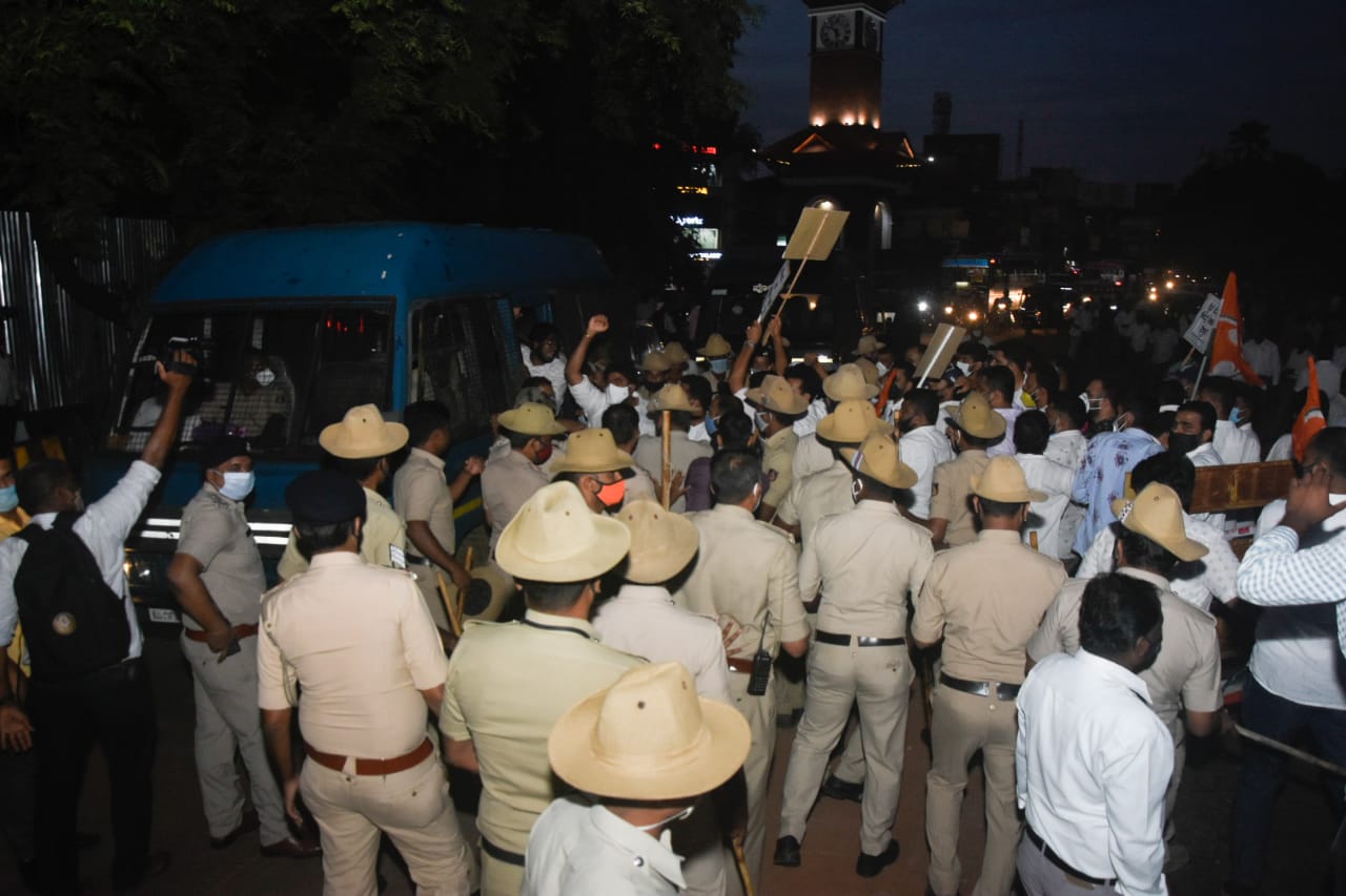ಯುವ ಕಾಂಗ್ರೆಸ್ ಅಧ್ಯಕ್ಷ ಮಿಥುನ್ ರೈ ನೇತೃತ್ವದಲ್ಲಿ ಸಂಜೆ 6 ಗಂಟೆಗೆ ನಗರದ ಕ್ಲಾಕ್ ಟವರ್ ಬಳಿಯಿಂದ ಜಿಲ್ಲಾಧಿಕಾರಿ ಕಚೇರಿವರೆಗೆ ಪಂಜಿನ ಮೆರವಣಿಗೆ ನಡೆಸಲು ಉದ್ದೇಶಿಸಿದ್ದು, ಭಾರೀ ಸಂಖ್ಯೆಯಲ್ಲಿ ಕಾರ್ಯಕರ್ತರು ಸ್ಥಳಕ್ಕಾಗಮಿಸಿದ್ದರು. ಆದರೆ ಪೊಲೀಸರು ಪಂಜಿನ ಮೆರವಣಿಗೆಗೆ ಅವಕಾಶ ನೀಡಲಿಲ್ಲ.