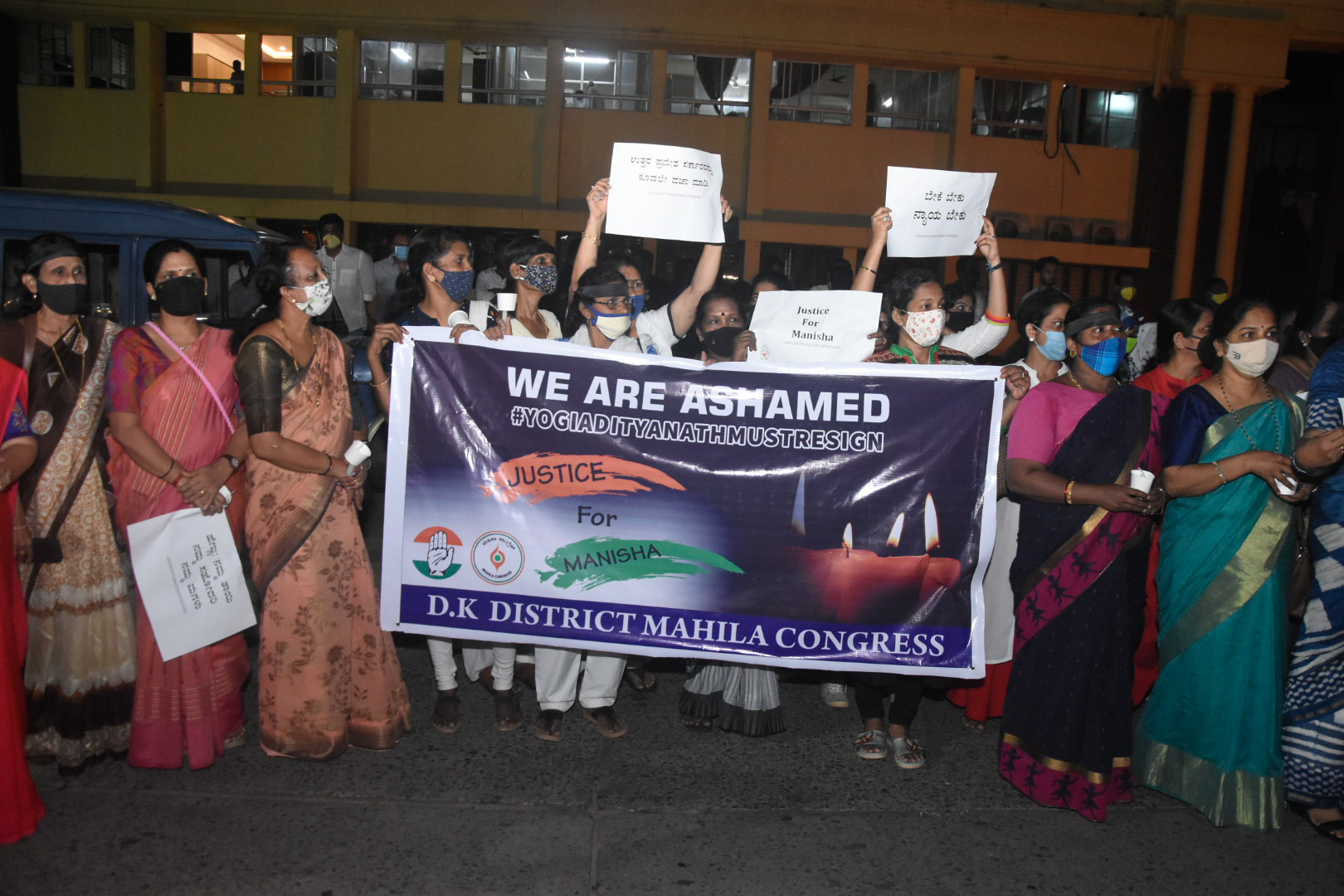 ಉತ್ತರ ಪ್ರದೇಶದಲ್ಲಿ ಯುವತಿಯ ಅತ್ಯಾಚಾರ, ಕೊಲೆ ಖಂಡಿಸಿ ದ.ಕ. ಜಿಲ್ಲಾ ಯುವಕಾಂಗ್ರೆಸ್ ವತಿಯಿಂದ ಪ್ರತಿಭಟನೆ