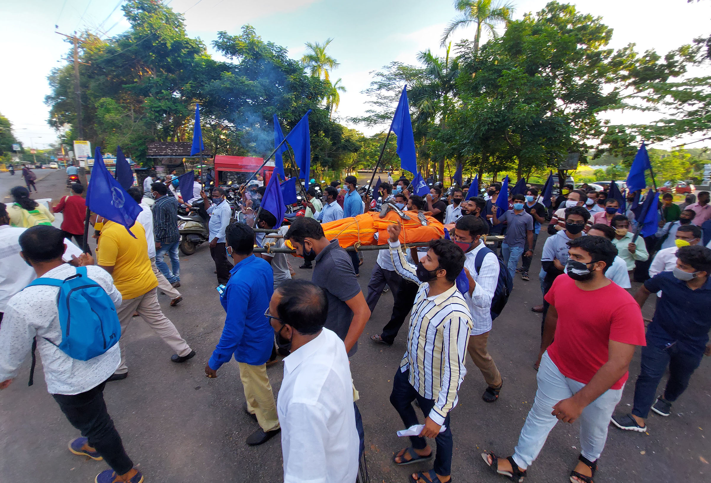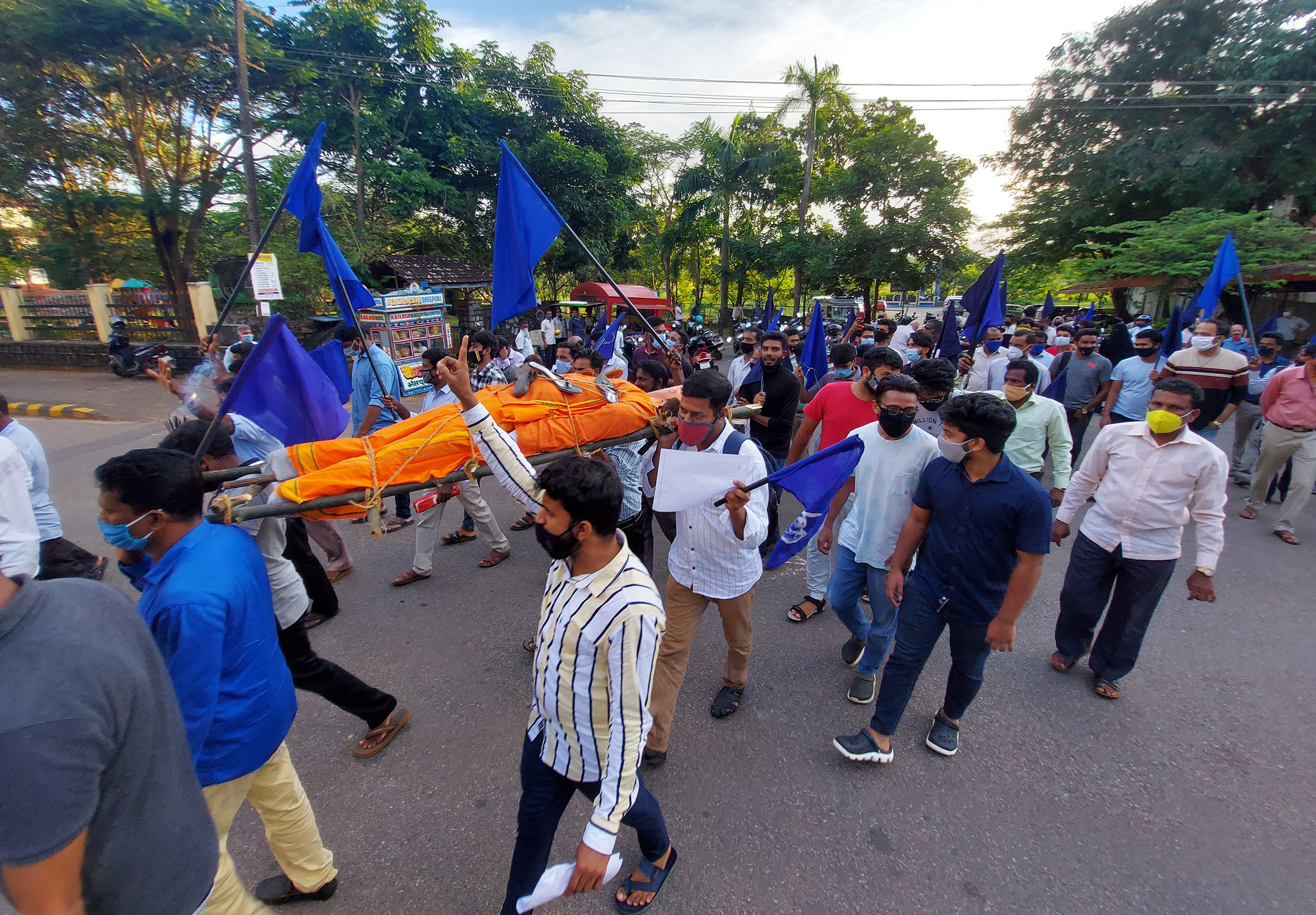 ಯುವತಿಯ ಅತ್ಯಾಚಾರ, ಕೊಲೆ ಖಂಡಿಸಿ ಉಡುಪಿಯಲ್ಲಿ ಪ್ರತಿಭಟನೆ: ಆದಿತ್ಯನಾಥ್ ಪ್ರತಿಕೃತಿಯ ಅಣಕು ಶವಯಾತ್ರೆ ನಡೆಸಿ ಆಕ್ರೋಶ