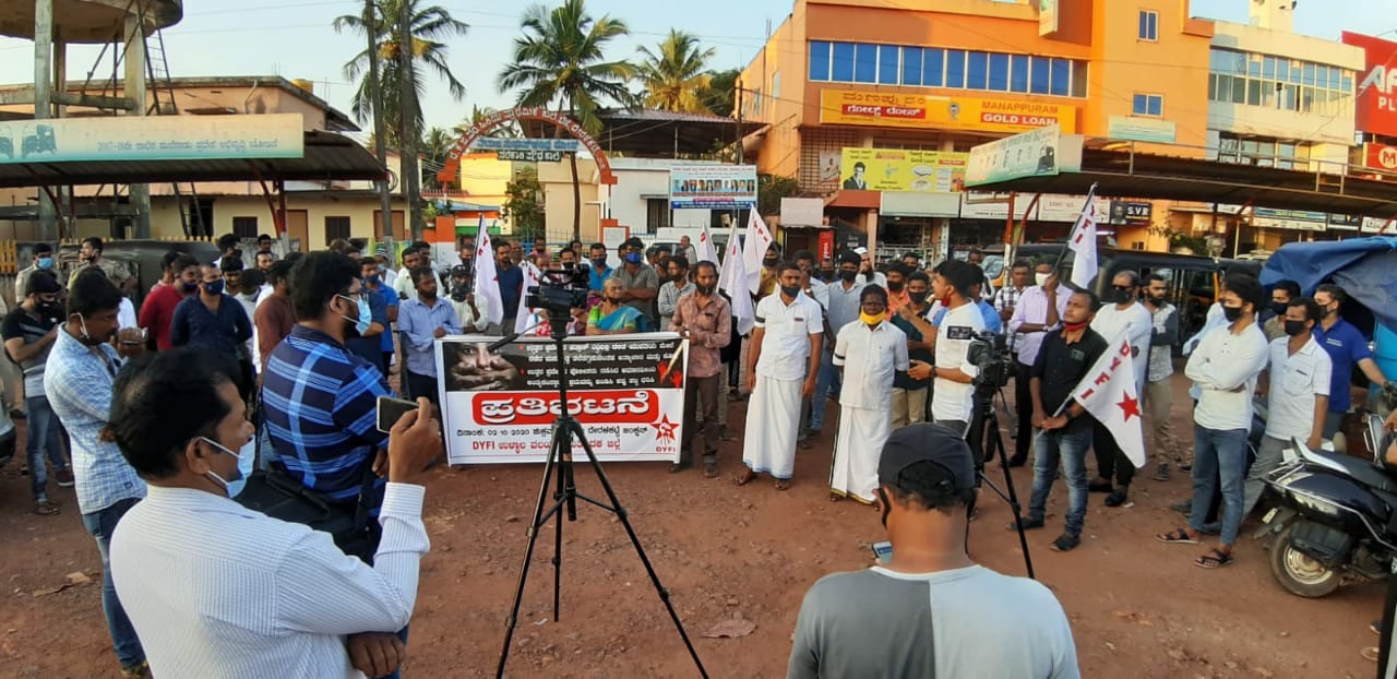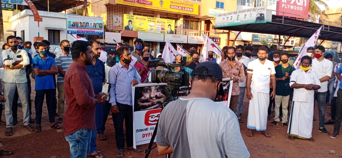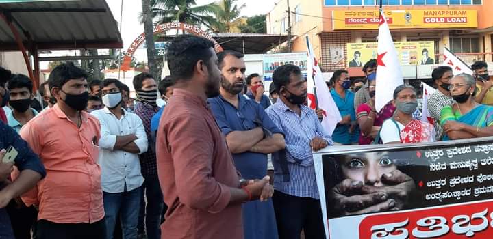 ಹತ್ರಸ್ ಅತ್ಯಾಚಾರ, ಅಮಾನವೀಯ ಅಂತ್ಯಸಂಸ್ಕಾರ ಖಂಡಿಸಿ ಡಿವೈಎಫ್ಐನಿಂದ ಪ್ರತಿಭಟನೆ