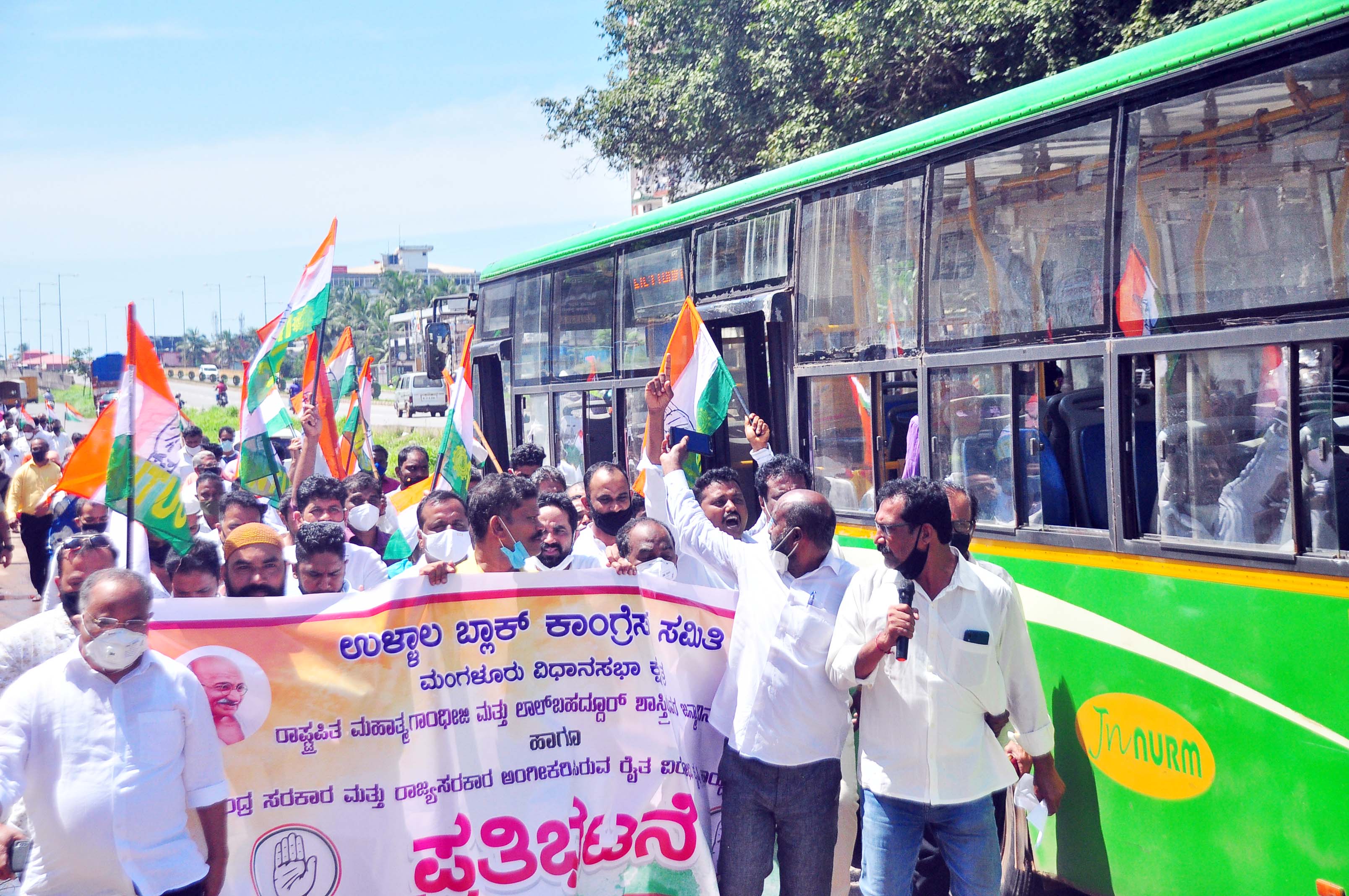 ಕೇಂದ್ರ ಸರ್ಕಾರದ ರೈತ ವಿರೋಧಿ ಕಾಯ್ದೆ ವಿರುದ್ಧ ಉಳ್ಳಾಲ ಕಾಂಗ್ರೆಸ್ ಪ್ರತಿಭಟನೆ