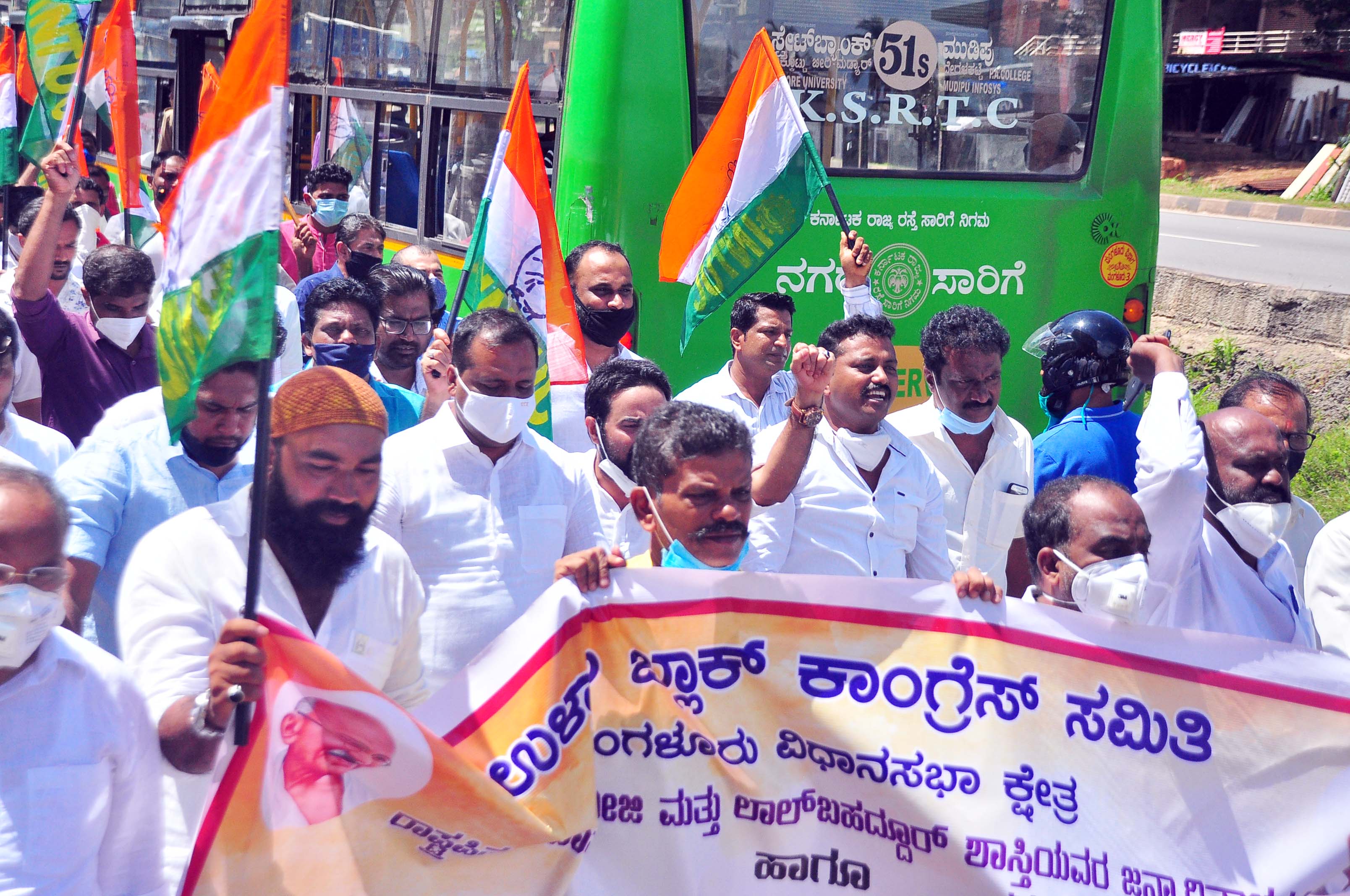 ಉಳ್ಳಾಲ : ಉಳ್ಳಾಲ ಬ್ಲಾಕ್ ಕಾಂಗ್ರೆಸ್ ವತಿಯಿಂದ ಮಹಾತ್ಮ ಗಾಂಧಿ ಹಾಗೂ ಲಾಲ್ ಬಹದ್ದೂರ್ ಶಾಸ್ತ್ರಿಯವರ ಜನ್ಮದಿನಾಚರಣೆ ಹಾಗೂ ಕೇಂದ್ರ ಸರ್ಕಾರದ ರೈತ ವಿರೋಧಿ ಕಾಯ್ದೆ ಜಾರಿ ಮಾಡಿರುವ ವಿರುದ್ಧ ಪ್ರತಿಭಟನಾ ಜಾಥಾ ತೊಕ್ಕೊಟ್ಟುವಿನಲ್ಲಿ ಶುಕ್ರವಾರ ನಡೆಯಿತು.