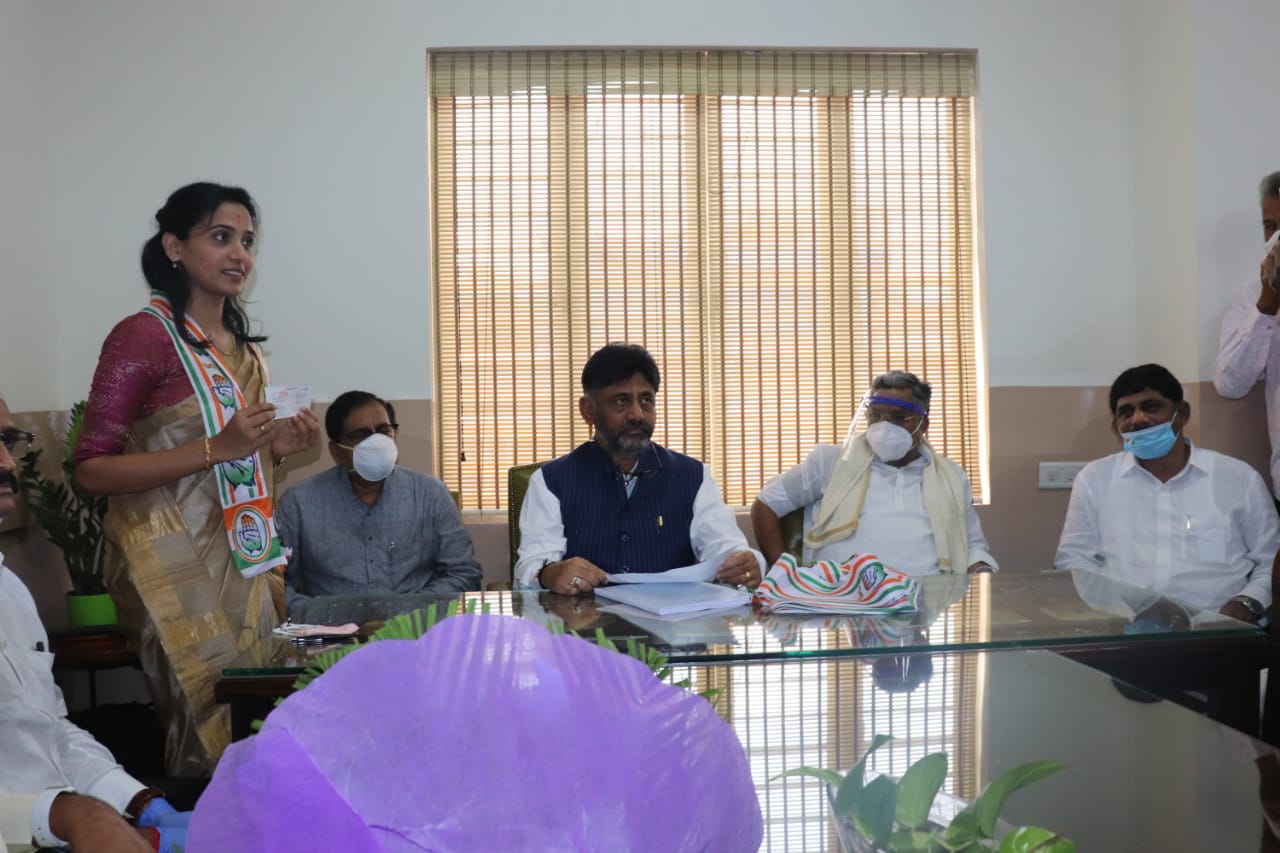 ಬೆಂಗಳೂರು, ಅ. 4: ರಾಜರಾಜೇಶ್ವರಿ ನಗರ ಕ್ಷೇತ್ರದ ಉಪಚುನಾವಣೆ ಹಿನ್ನೆಲೆ ಕಾಂಗ್ರೆಸ್ ಟಿಕೆಟ್ ಆಕಾಂಕ್ಷಿ ಆಗಿರುವ ಕುಸುಮಾ ರವಿ ಅವರು ರವಿವಾರ ಅಧಿಕೃತವಾಗಿ ಕಾಂಗ್ರೆಸ್ಗೆ ಸೇರ್ಪಡೆಯಾದರು.