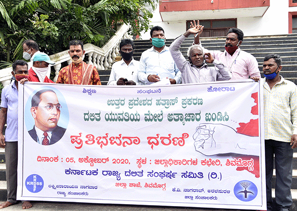 ಶಿವಮೊಗ್ಗ: ದಲಿತ ಯುವತಿಯ ಅತ್ಯಾಚಾರ, ಹತ್ಯೆ ಖಂಡಿಸಿ ವಿವಿಧ ಸಂಘಟನೆಗಳಿಂದ ಪ್ರತಿಭಟನೆ