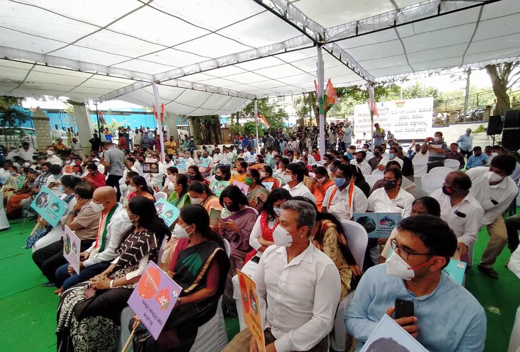 ಪ್ರತಿಭಟನೆಯಲ್ಲಿ ವಿಪಕ್ಷ ನಾಯಕ ಸಿದ್ದರಾಮಯ್ಯ, ಕೆಪಿಸಿಸಿ ಕಾರ್ಯಾಧ್ಯಕ್ಷ ಸಲೀಂ ಅಹ್ಮದ್ ಮಾಜಿ ಸಚಿವ ಕೆ.ಎಚ್.ಮುನಿಯಪ್ಪ, ಶಾಸಕರಾದ ಕೆ.ಜೆ.ಜಾರ್ಜ್, ಭೈರತಿ ಸುರೇಶ್, ರಿಝ್ವಾನ್ ಅರ್ಶದ್, ಸೌಮ್ಯ ರೆಡ್ಡಿ ಸೇರಿದಂತೆ ಕಾಂಗ್ರೆಸ್ ವಿವಿಧ ವಿಭಾಗ ಮುಖ್ಯಸ್ಥರು, ಪದಾಧಿಕಾರಿಗಳು ಪಾಲ್ಗೊಂಡಿದ್ದರು.