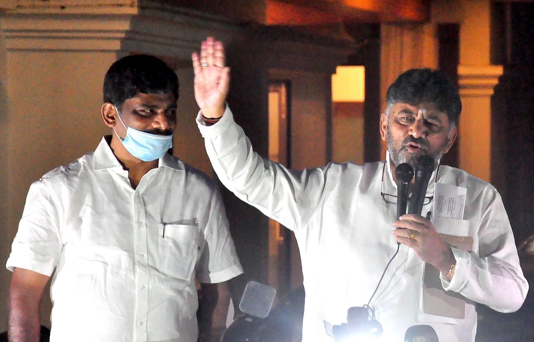 ನಾನು ಜೈಲಿನಿಂದ ಬಂದಾಗ ಇಂತಹ ಮೆರವಣಿಗೆ ಬೇಕೆ ಎಂದು ಕೆಲವು ಮಾತನಾಡಿದರು. ಪರಪ್ಪನ ಅಗ್ರಹಾರದಿಂದ ಕೆಲವರು ಬಂದರಲ್ಲ, ಅವರು ಯಾವ ರೀತಿ ಬಂದರು, ಏನಾಯಿತು ಅನ್ನೋದನ್ನ ನಾನು ಹೇಳಬೇಕಿಲ್ಲ. ಈಗ ಮಾತನಾಡುತ್ತಿರುವವರು ಅದನ್ನು ನೆನೆಸಿಕೊಂಡರೆ ಸಾಕು. ನಾನು ವಿಜಯದ ಸಂಕೇತ ತೋರಿಸಿಕೊಂಡು ಹೊರಗೆ ಬಂದಿಲ್ಲ, ಕೈ ಮುಗಿದುಕೊಂಡು, ನೊಂದು, ಬೆಂದು ಹೊರಗೆ ಬಂದಿದ್ದೇನೆ ಎಂದು ಶಿವಕುಮಾರ್ ಹೇಳಿದರು.