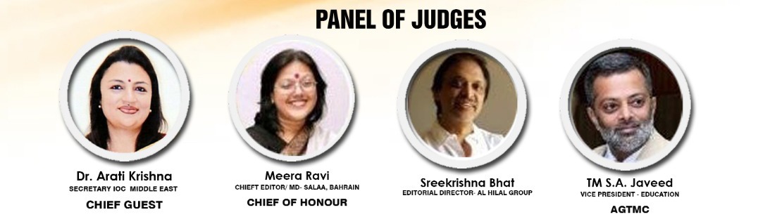 ಡಾ. ಆರತಿ ಕೃಷ್ಣ, ಮೀರಾ ರವಿ, ಬಹರೇನ್ ನ ಪ್ರಮುಖ ಸುದ್ದಿ ಮಾಧ್ಯಮ ಅಲ್ ಹಿಲಾಲ್ ಸಂಸ್ಥೆಯ ಸಂಪಾದಕ -ನಿರ್ದೇಶಕ ಕೃಷ್ಣ ಭಟ್ , ಬಹರೈನ್ ಟೊಸ್ಟ್ ಮಾಸ್ಟರ್ಸ್ ಸಂಸ್ಥೆಯ ಉಪಾಧ್ಯಕ್ಷ (ಶಿಕ್ಷಣ ವಿಭಾಗ) ಎಸ್.ಎ. ಜಾವೇದ್ ಸ್ಪರ್ಧೆಯ ತೀಪುಗಾರರಾಗಿದ್ದಾರು.