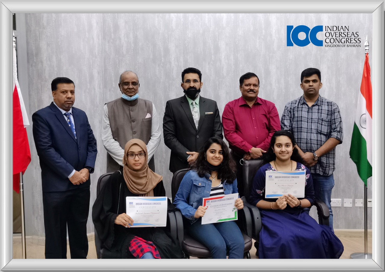 ಬಹರೈನ್ : ಭಾರತೀಯ ಸಾಗರೋತ್ತರ ಕಾಂಗ್ರೆಸ್ ಬಹರೈನ್ ಘಟಕವು ಗಾಂಧಿ ಜಯಂತಿ ಅಂಗವಾಗಿ ಬಹರೈನ್ ನ ಶಿಕ್ಷಣ ಸಂಸ್ಥೆಗಳಲ್ಲಿ ಕಲಿಯುತ್ತಿರುವ 12 ರಿಂದ 16 ವಯಸ್ಸಿನ ವಿದ್ಯಾರ್ಥಿಗಳಿಗೆ ಭಾಷಣ ಸ್ಫರ್ಧೆಯನ್ನು ಇತ್ತೀಚೆಗೆ ಏರ್ಪಡಿಸಿತ್ತು.