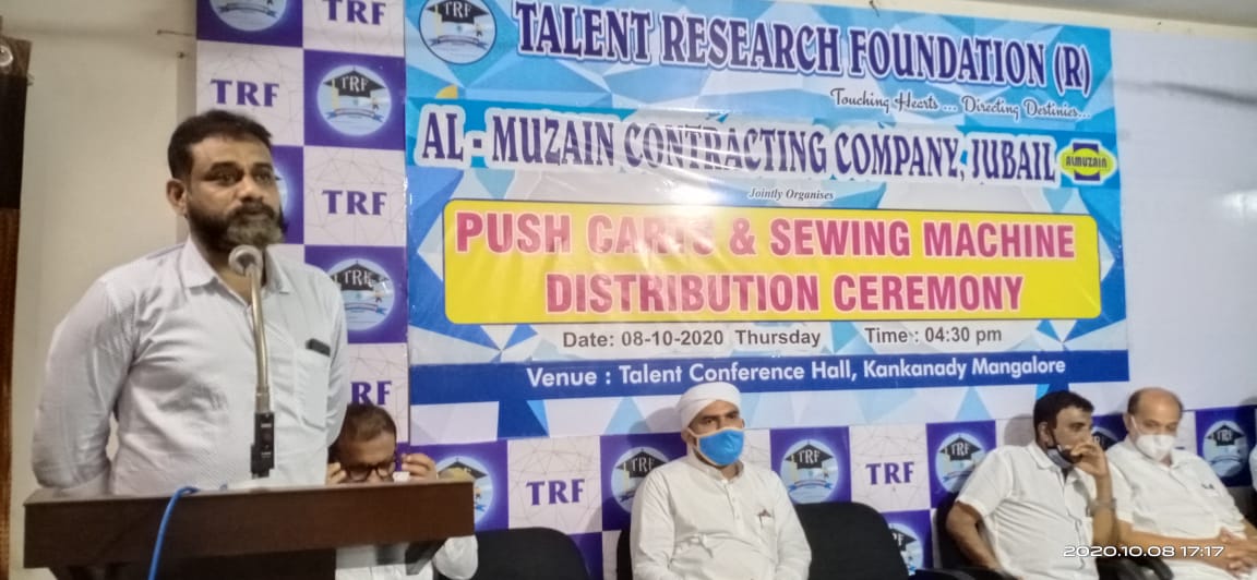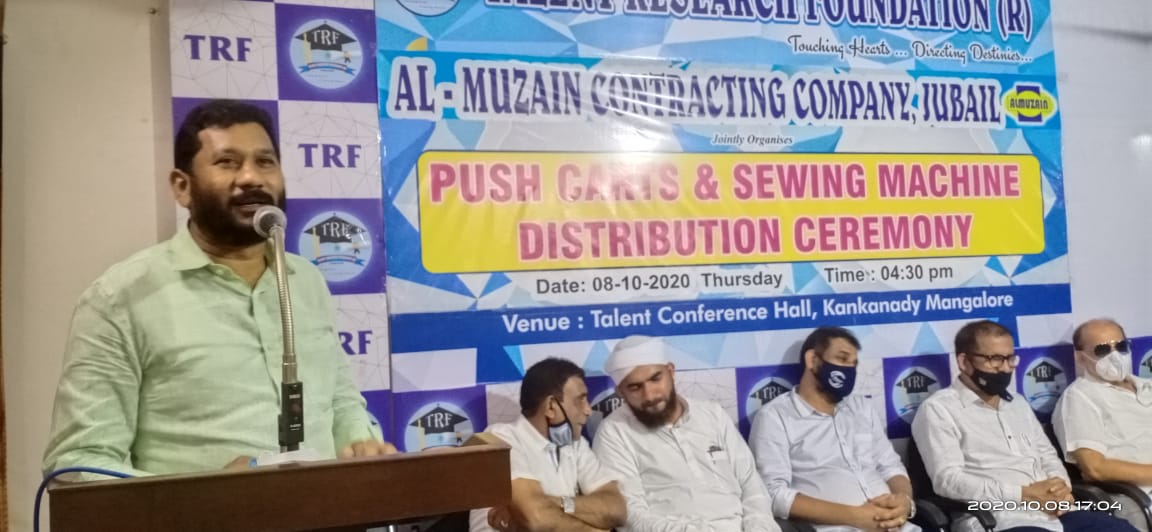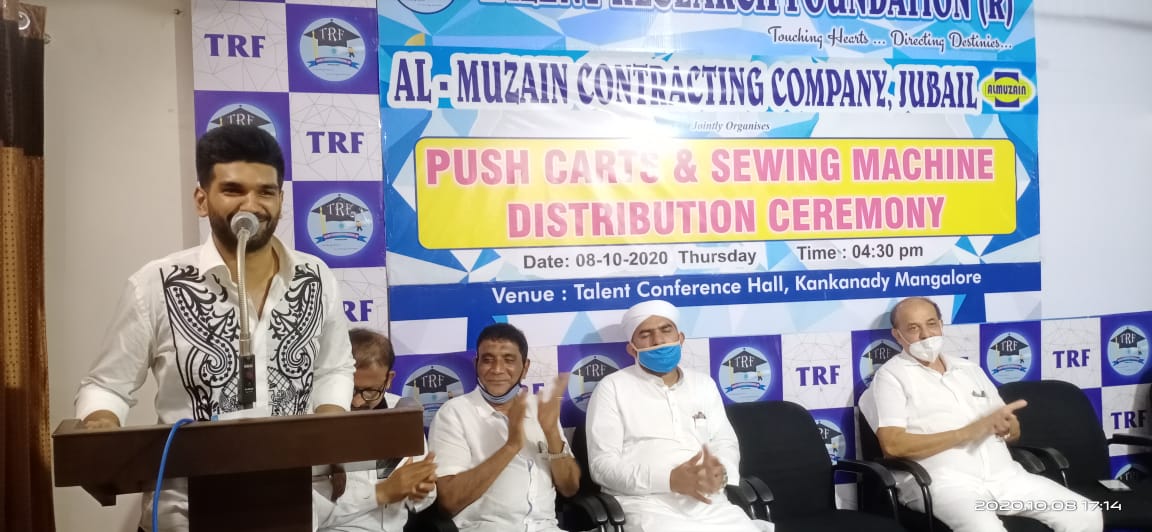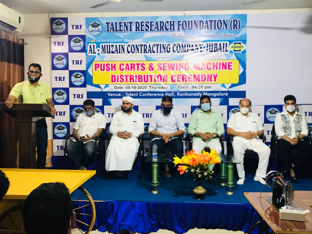 ಮಂಗಳೂರು, ಅ.8: ಜುಬೈಲ್ನ ಅಲ್ಮುಝೈನ್ ಕಾಂಟ್ರಾಕ್ಟಿಂಗ್ ಕಂಪೆನಿಯ ಸಹಯೋಗದಲ್ಲಿ ಟ್ಯಾಲೆಂಟ್ ರಿಸರ್ಚ್ ಫೌಂಡೇಶನ್ ವತಿ ಯಿಂದ ತಳ್ಳುಗಾಡಿ ಮತ್ತು ಹೊಲಿಗೆ ಯಂತ್ರ ವಿತರಣೆ ಕಾರ್ಯಕ್ರಮವು ಟಿಆರ್ಎಫ್ ಸಭಾಂಗಣದಲ್ಲಿ ಗುರುವಾರ ಜರುಗಿತು.