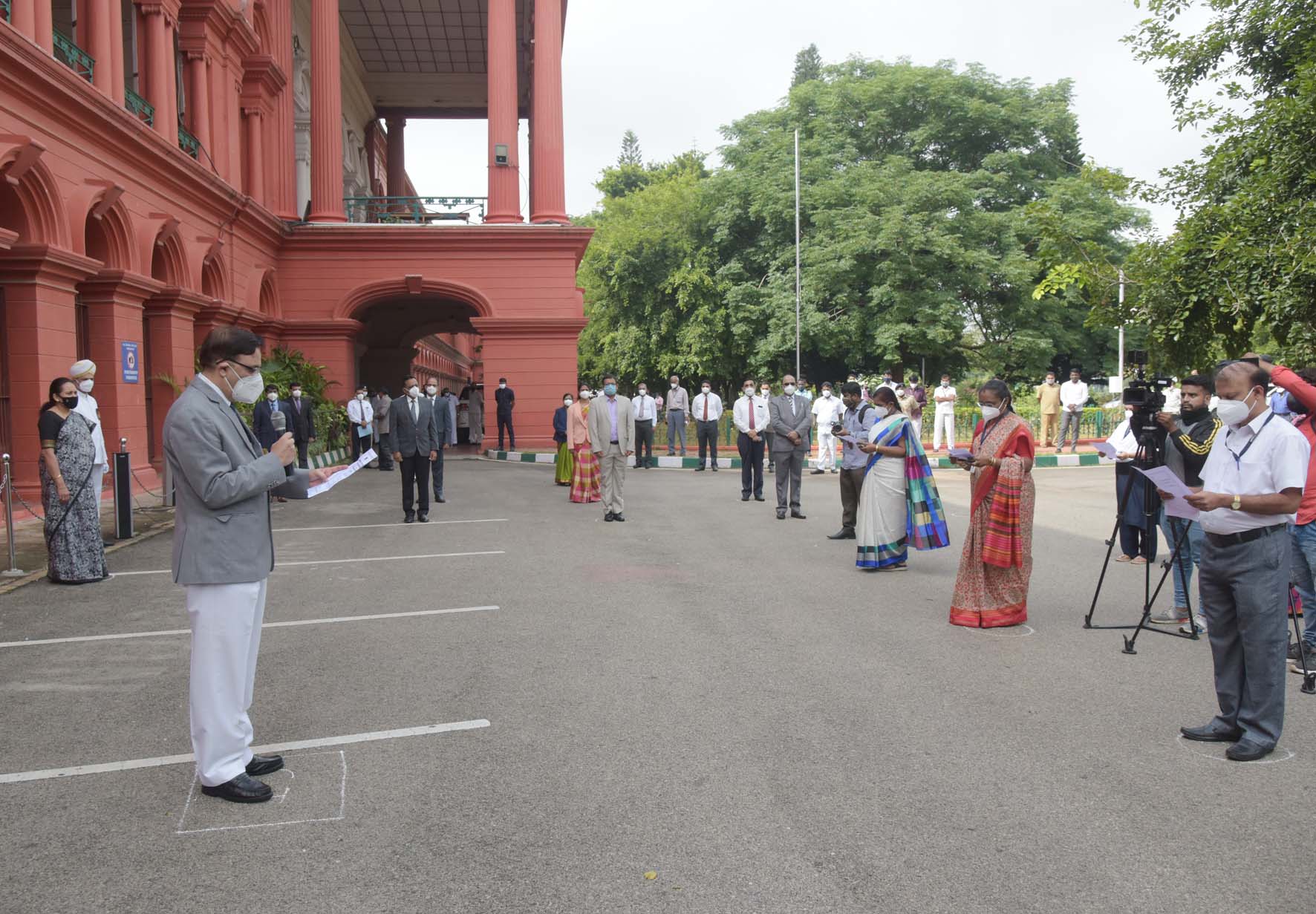 ರಾಜ್ಯ ಉಚ್ಚ ನ್ಯಾಯಾಲಯದ ಆವರಣದಲ್ಲಿ ಕರ್ನಾಟಕ ರಾಜ್ಯ ಕಾನೂನು ಸೇವಾ ಪ್ರಾಧಿಕಾರ, ಬೆಂಗಳೂರು ವಕೀಲರ ಸಂಘ ಹಮ್ಮಿಕೊಂಡಿದ್ದ ಕಾರ್ಯಕ್ರಮದಲ್ಲಿ ಪ್ರತಿಜ್ಞಾವಿಧಿ ಬೋಧಿಸಿದ ಅವರು ಬಳಿಕ ಸಾರ್ವಜನಿಕರ ಜಾಗೃತಿಗಾಗಿ ವಾರ್ತಾ ಮತ್ತು ಸಾರ್ವಜನಿಕ ಸಂಪರ್ಕ ಇಲಾಖೆ ವಿಶೇಷವಾಗಿ ನಿರ್ಮಿಸಿದ್ದ ಕೋವಿಡ್ ಜಾಗೃತಿ ಸಂದೇಶಗಳನ್ನು ಒಳಗೊಂಡ ಎಲ್ಇಡಿ ವಾಲ್ ಹೊಂದಿರುವ ವಾಹನಕ್ಕೆ ಚಾಲನೆ ನೀಡಿದರು.