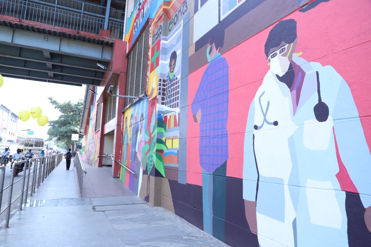 ಕೋವಿಡ್-19 ಸಮಯದಲ್ಲಿ ತಮ್ಮ ಪ್ರಾಣವನ್ನೇ ಪಣಕ್ಕಿಟ್ಟು ಹೋರಾಡಿದ ಕಾರ್ಮಿಕರು, ಆರೋಗ್ಯ ಇಲಾಖೆ ಸಿಬ್ಬಂದಿ ಮತ್ತು ಬಿಬಿಎಂಪಿ ಪೌರಕಾರ್ಮಿಕರ ಶ್ರಮಕ್ಕೆ ಗೌರವ ಸಲ್ಲಿಸುವ ಸಲುವಾಗಿ ಈ ಭಿತ್ತಿ ಚಿತ್ರಗಳನ್ನು ಬಿಡಿಸಲಾಗಿದೆ.