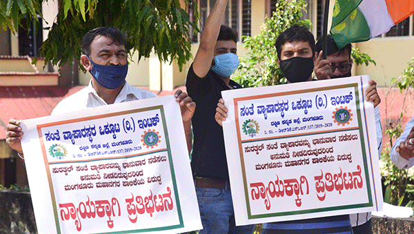 ಶಾಸಕ ಯು.ಟಿ ಖಾದರ್, ಇಂಟಕ್ ಜಿಲ್ಲಾ ಅಧ್ಯಕ್ಷ ಮನೋಹರ್ ಶೆಟ್ಟಿ, ಯುವ ಇಂಟಕ್ ಕಾರ್ಯದರ್ಶಿ ದಿನಕರ್ ಶೆಟ್ಟಿ ಮಾತನಾಡಿ, ಮನಪಾ ಕೊರೋನ ಬಳಿಕ ಬಡವರ ಬದುಕಿನ ಹಾದಿಯನ್ನು ಬಂದ್ ಮಾಡುತ್ತಿದೆ. ಕೊರೋನ ನಿಯಮಾವಳಿಯನ್ನು ತಮ್ಮ ಲಾಭಕ್ಕೆ ಬಳಸಿಕೊಳ್ಳುತ್ತಿದೆ ಎಂದು ಆರೋಪಿಸಿದರು.