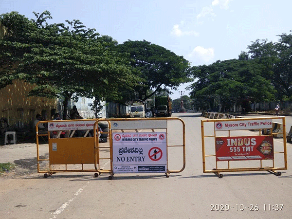 ಮೈಸೂರು, ಅ.26: ದಸರಾ ಜಂಬೂ ಸವಾರಿಯ ಸಂದರ್ಭ ಸಾರ್ವಜನಿಕರ ಪ್ರವೇಶಕ್ಕೆ ನಿರ್ಬಂಧ ಹೇರಿರುವ ಜಿಲ್ಲಾಡಳಿತ, ಅರಮನೆ ಸುತ್ತಲೂ ಬ್ಯಾರಿಕೇಡ್ ಗಳನ್ನು ಹಾಕಿ ರಸ್ತೆಗಳನ್ನು ಮುಚ್ಚಿದೆ. ಎಲ್ಲೆಡೆ ಪೊಲೀಸ್ ಬಂದೋಬಸ್ತ್ ವ್ಯವಸ್ಥೆ ಮಾಡಲಾಗಿದೆ.