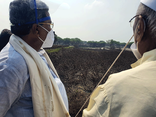 ಕಲಬುರಗಿ, ಅ.26: ಭೀಕರ ಪ್ರವಾಹದಿಂದ ಹಾನಿಗಿಡಾದ ಅಫ್ಝಲ್ ಪುರ ತಾಲೂಕಿನ ಸರಡಗಿ ಬ್ರಿಡ್ಜ್, ಜೇವರ್ಗಿ ತಾಲೂಕಿನ ಕೋನ ಹಿಪ್ಪರಗ ಬ್ರಿಡ್ಜ್, ಕಟ್ಟಿ ಸಂಗಾವಿ ಗ್ರಾಮಗಳ ಪ್ರವಾಹ ಪೀಡಿತ ಪ್ರದೇಶಗಳಿಗೆ ಮಾಜಿ ಮುಖ್ಯಮಂತ್ರಿ, ವಿರೋಧ ಪಕ್ಷದ ನಾಯಕ ಸಿದ್ದರಾಮಯ್ಯ ಸೋಮವಾರ ಭೇಟಿ ನೀಡಿ ಸಂತ್ರಸ್ತರೊಂದಿಗೆ ಮಾತುಕತೆ ನಡೆಸಿದರು.